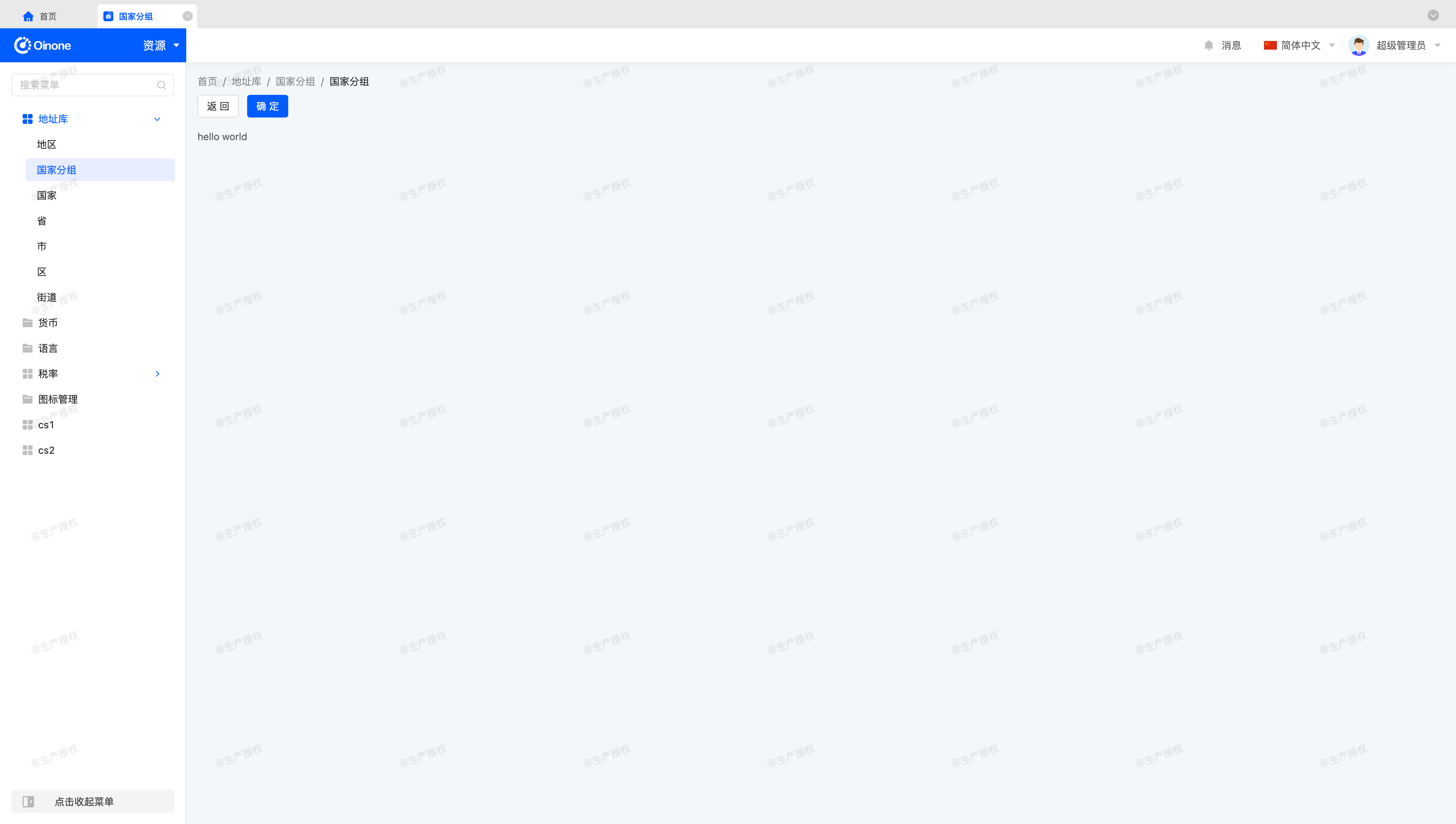 }In the following sections, the template for the registerLayout method will no longer be provided. Readers can complete the layout (Layout) registration and component switching by themselves according to the default layout provided in the Layout article. Similar to creating the custom table component above, we first use hello world to see the effect page of component switching: