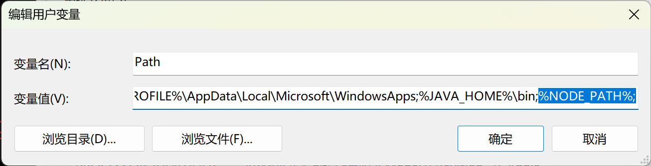 rundll32.exe sysdm.cpl,EditEnvironmentVariablesConfigure NODE_PATH as the installation directory of node, and add the variable %NODE_PATH% to Path