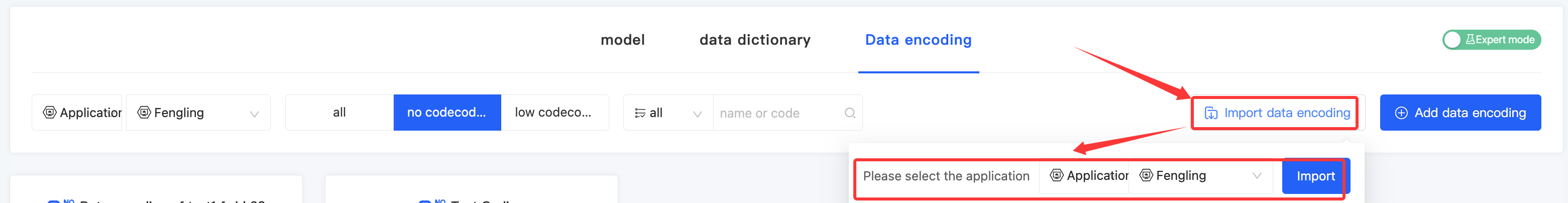 - Click "Import Data Encoding" and select the affiliated application.