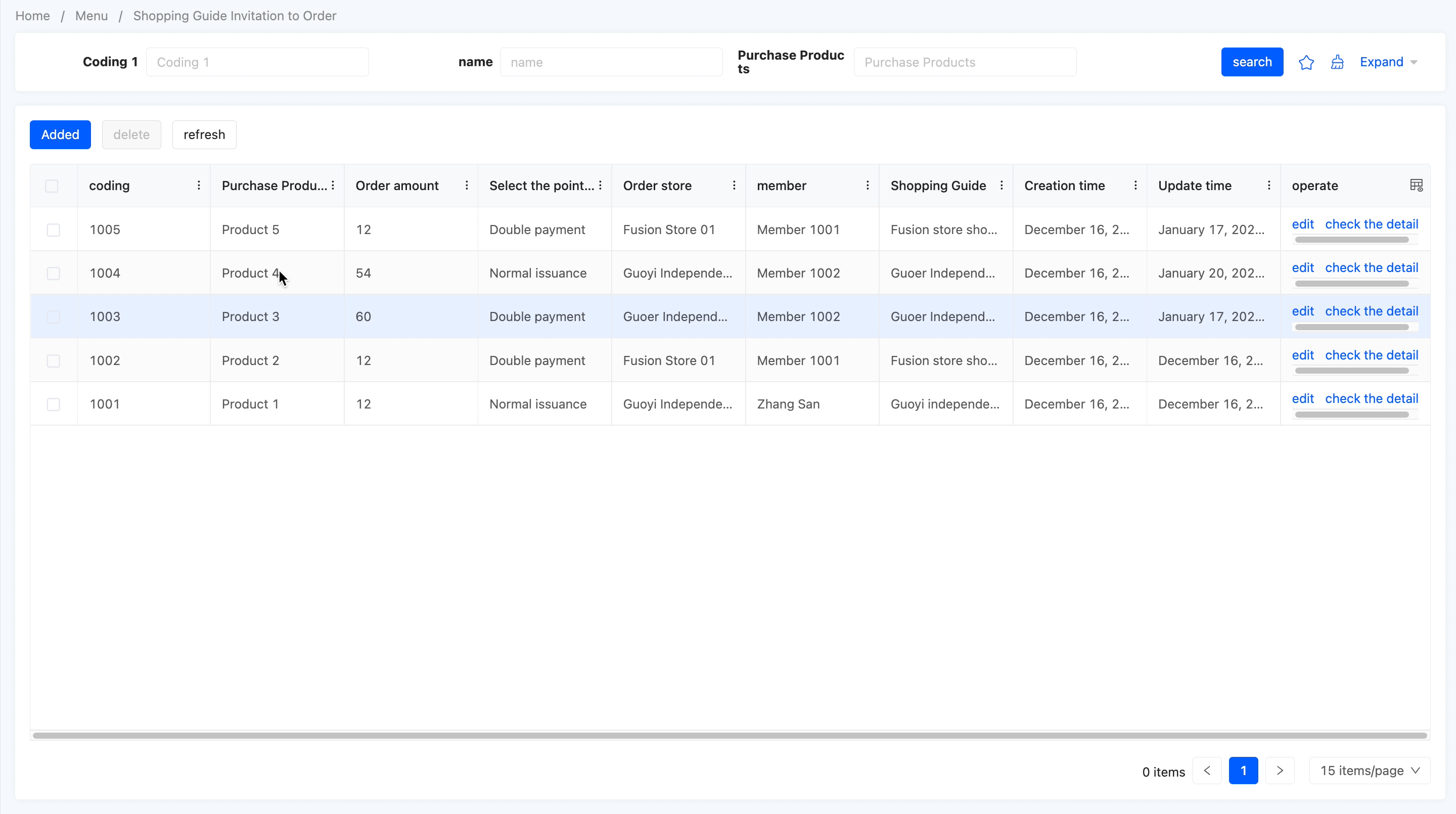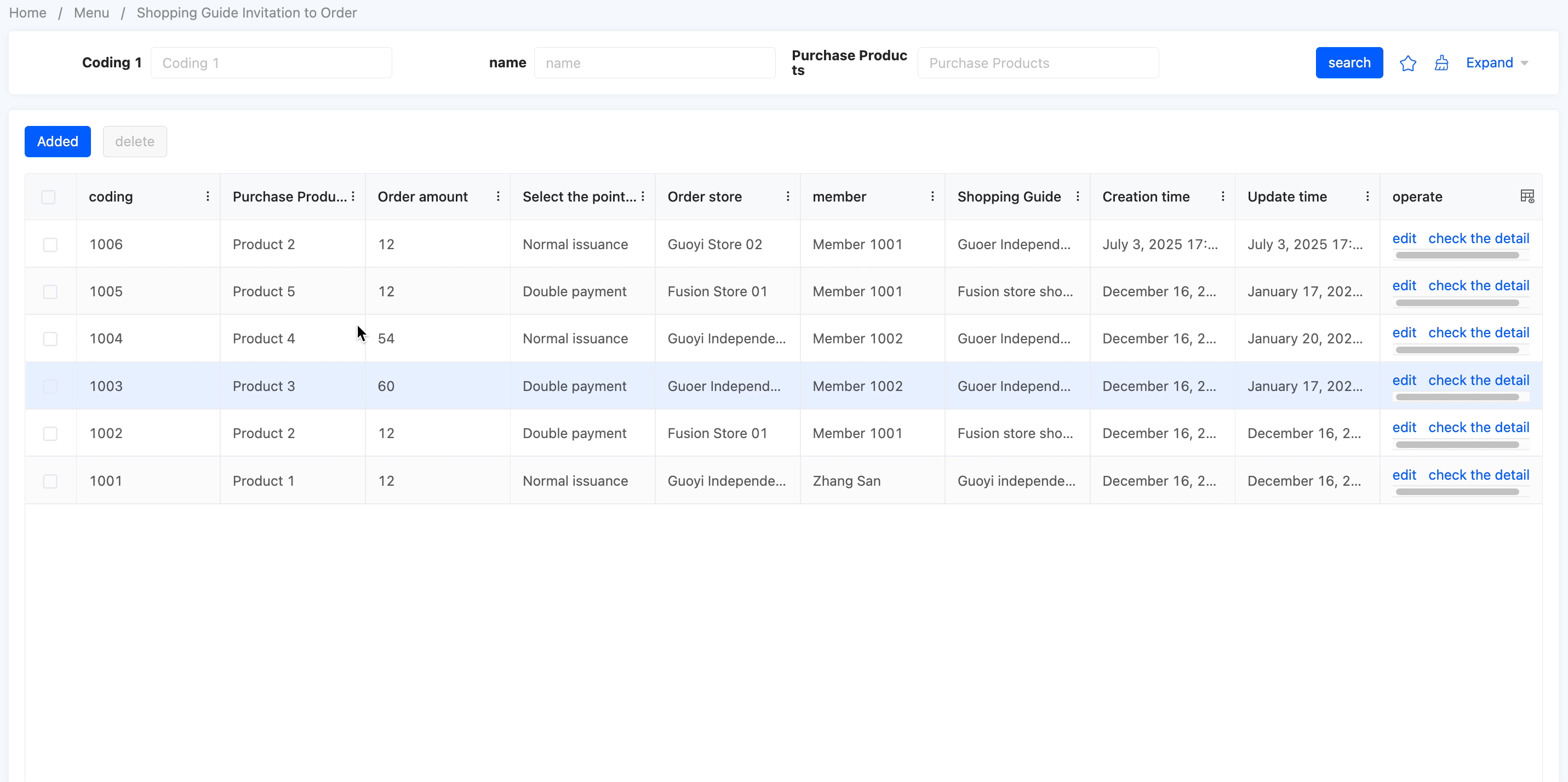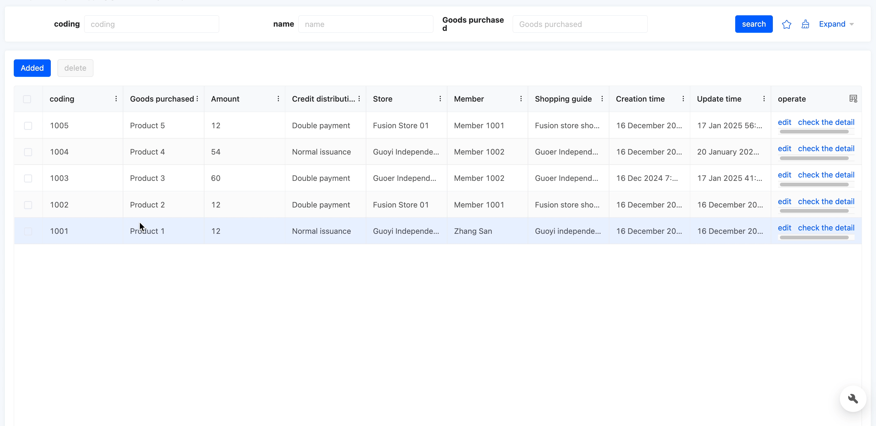 - Add a Row of Data: You can directly add a row of data to the table without jumping to a page.