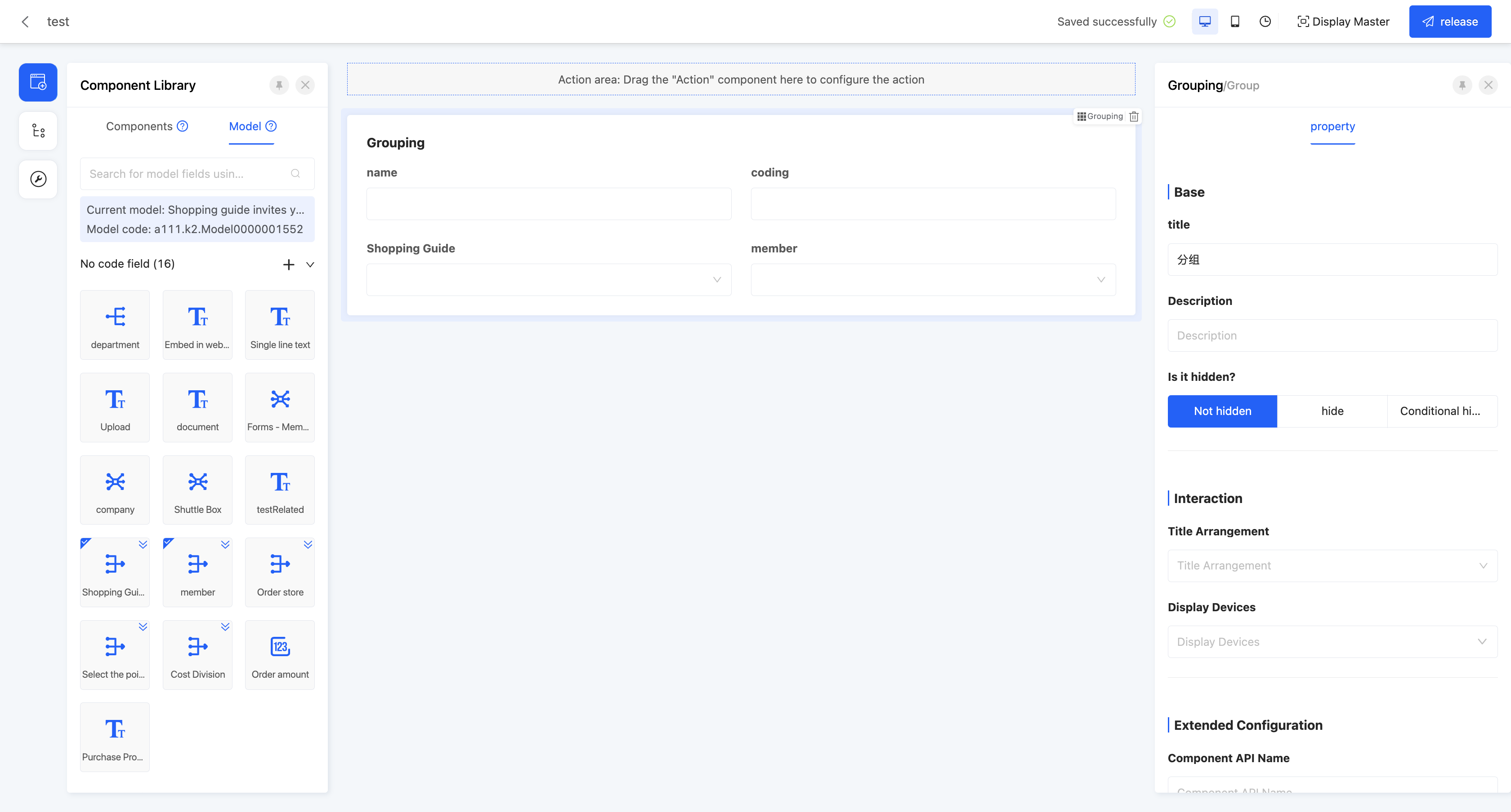 When designing a PC page, if the display device of a grouping component is set to only mobile devices and does not include PC devices, then in the actual page display, the grouping component and all its included components will not be shown on the PC page.