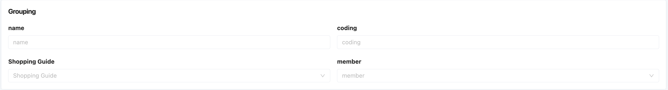 Specific attributes of the grouping component: