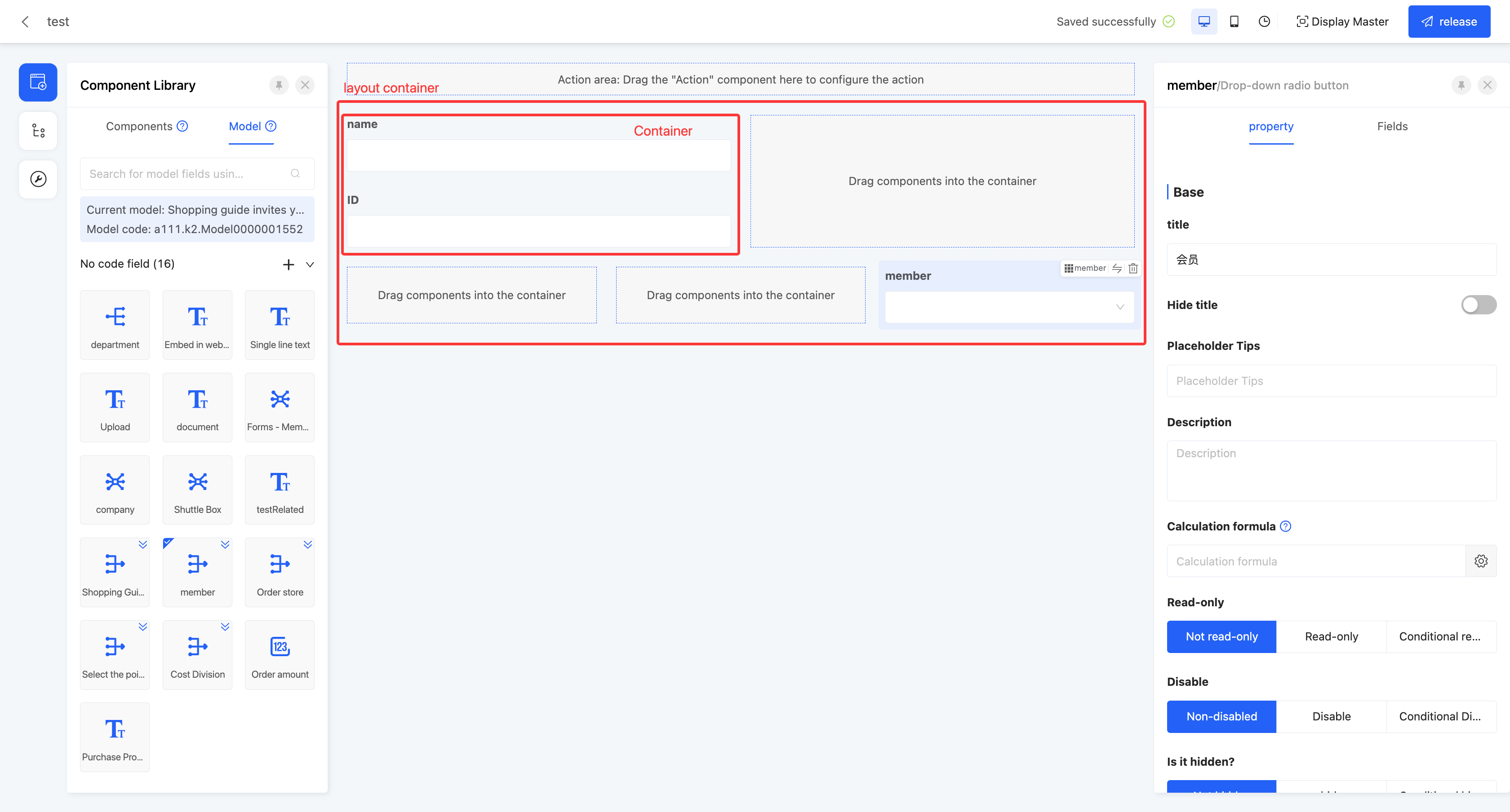 The layout container contains multiple sub - containers. When setting attributes, if you select the "layout container", the same attribute settings will be uniformly applied to all included containers; if you select a specific "container", only the attributes of that single container will be set, without affecting other containers.
