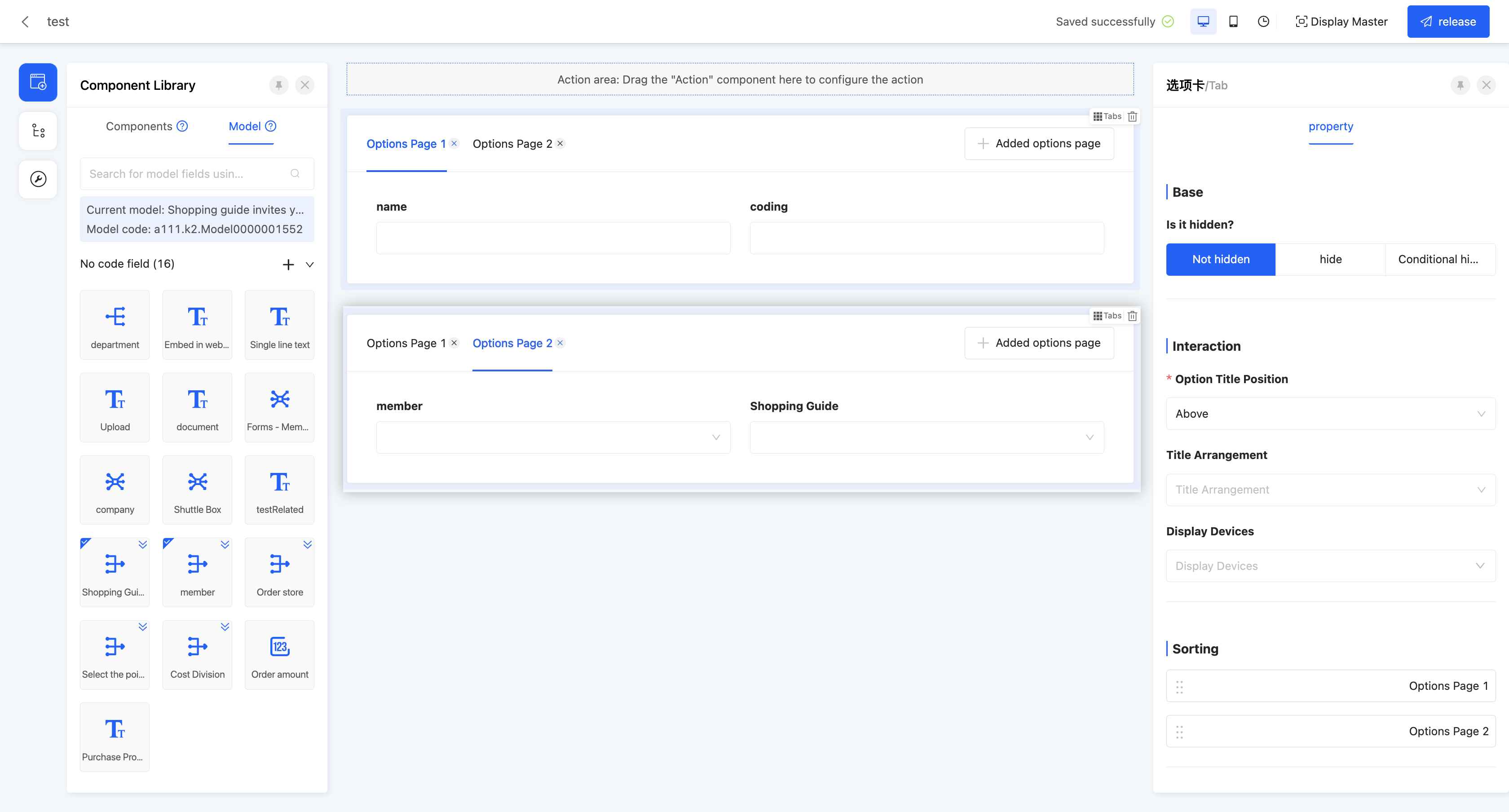 Multiple tab pages can be added to each tab. Users can configure different components for each tab page to meet diverse display requirements.