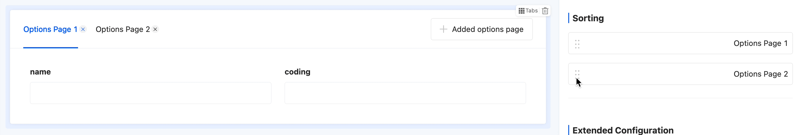 - Sorting: Supports dragging tab pages to change their positions.