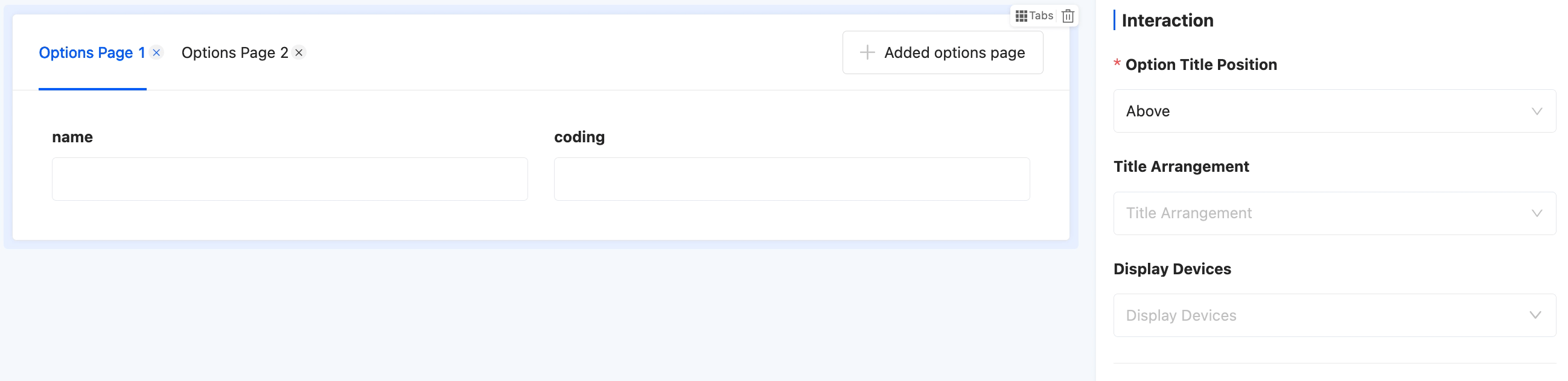 - Tab Title Position: Supports two positions: top or left.