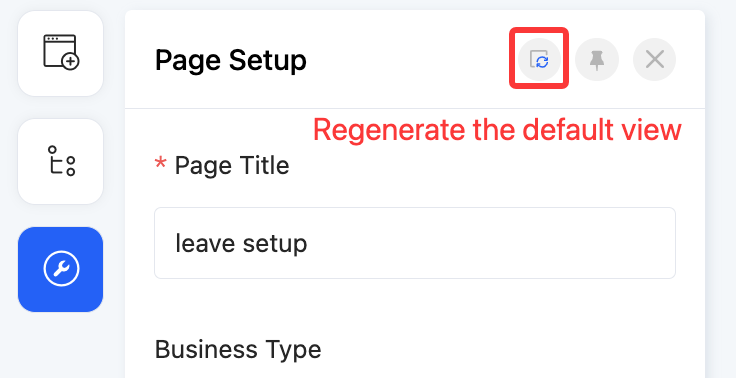 When there are changes to the fields in the model to which the page belongs, users can use the "Regenerate Default View" function above the page settings to quickly generate a new page according to the model changes. This function provides two generation methods: