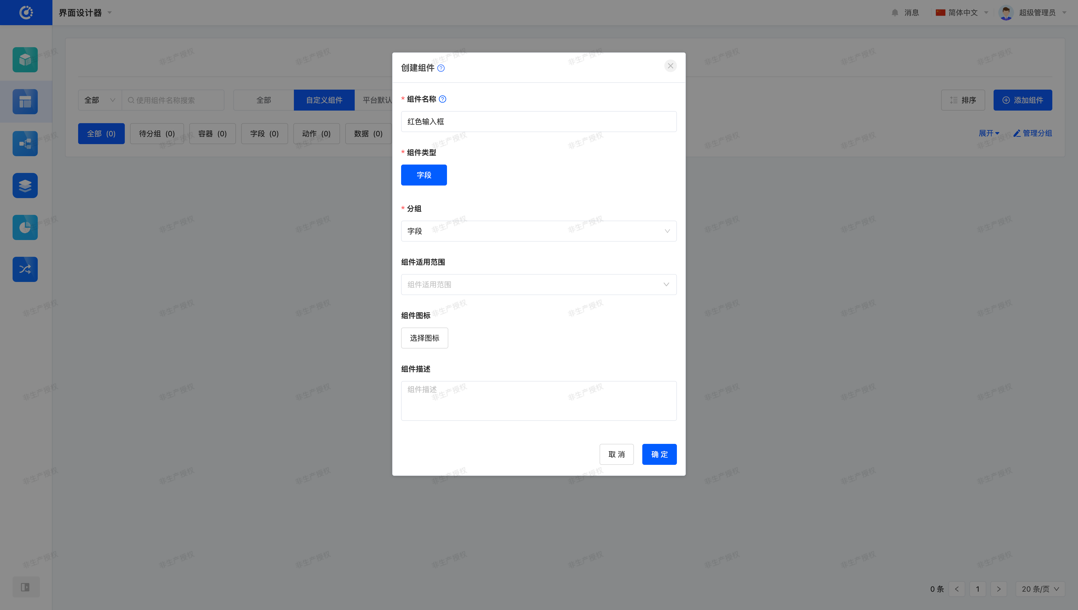 弹窗中的 “组件名称” 将在 “页面设计” 或 “组件设计” 的左侧组件库中显示。