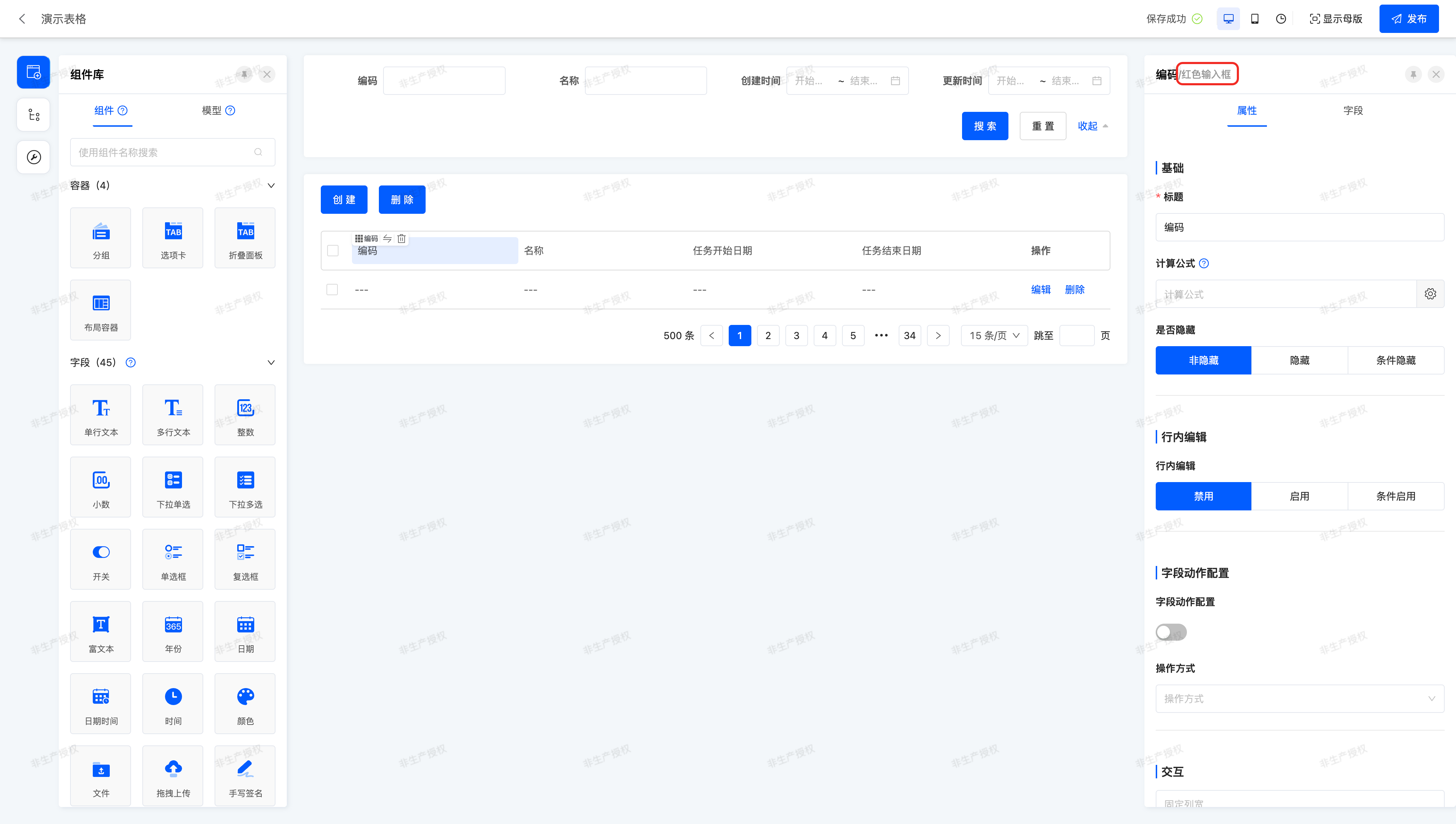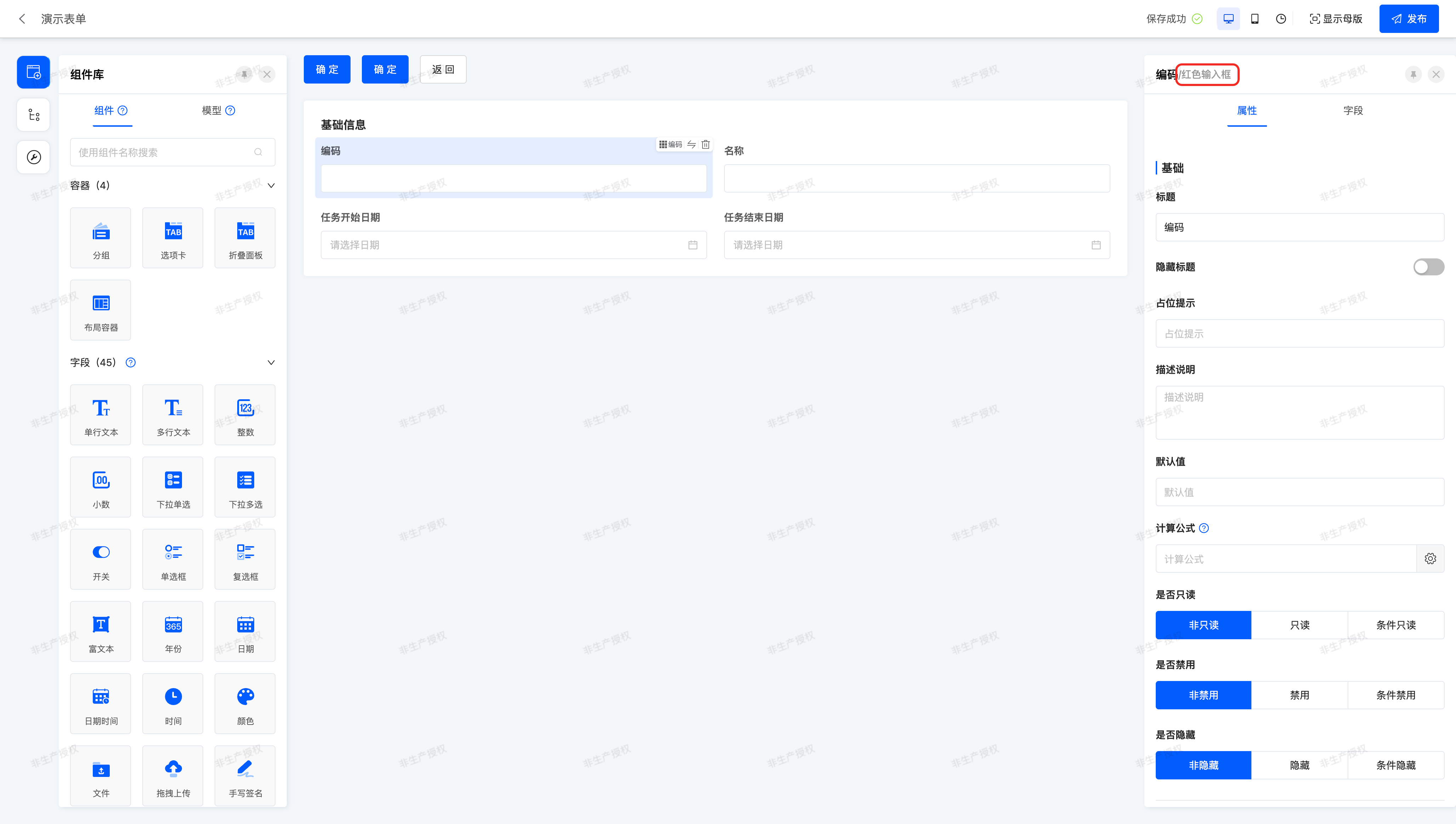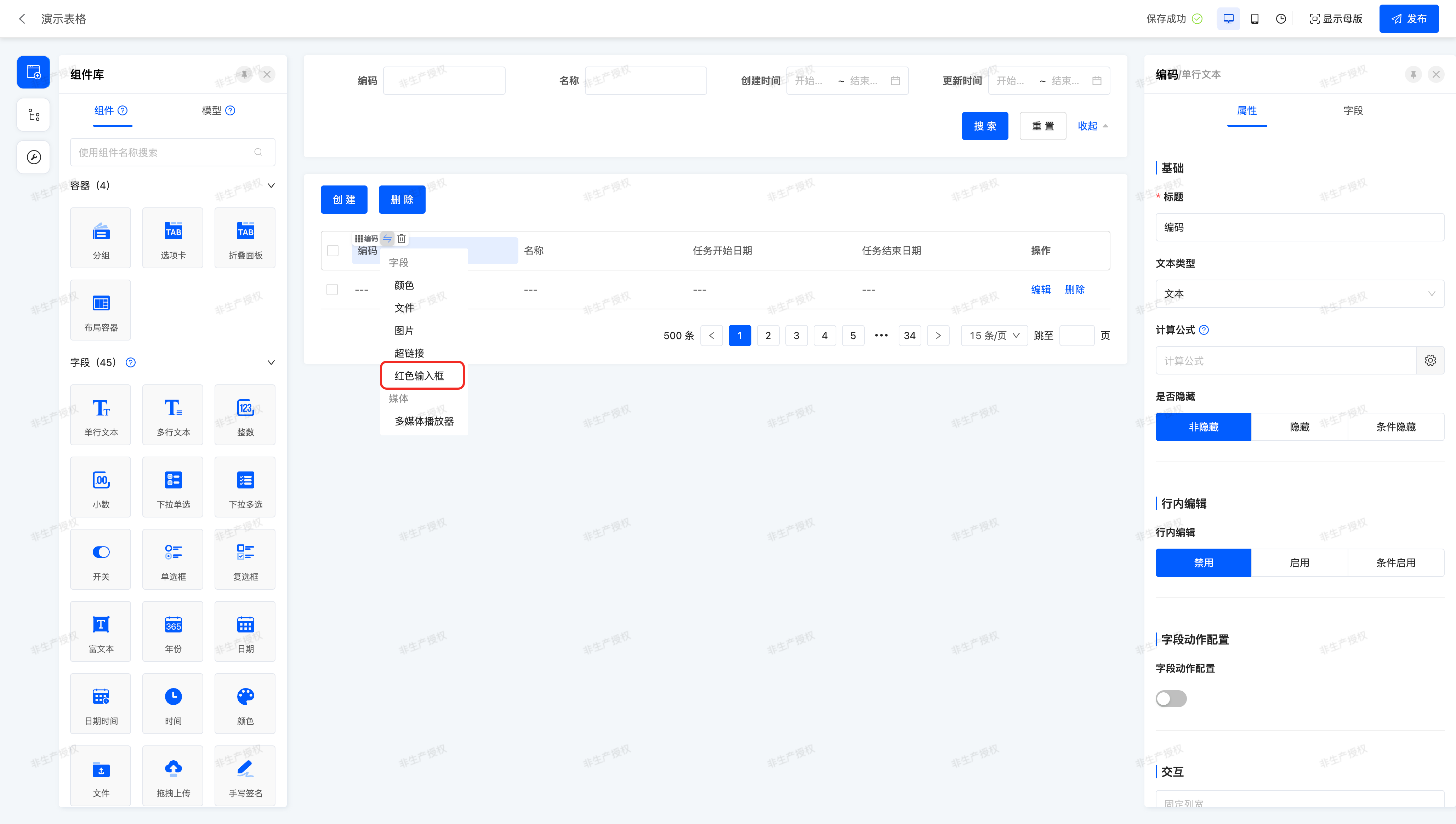 下面你需要自行操作,在 “表单视图” 中将 “编码字段” 的组件也同样切换为 “红色输入框” 吧:
