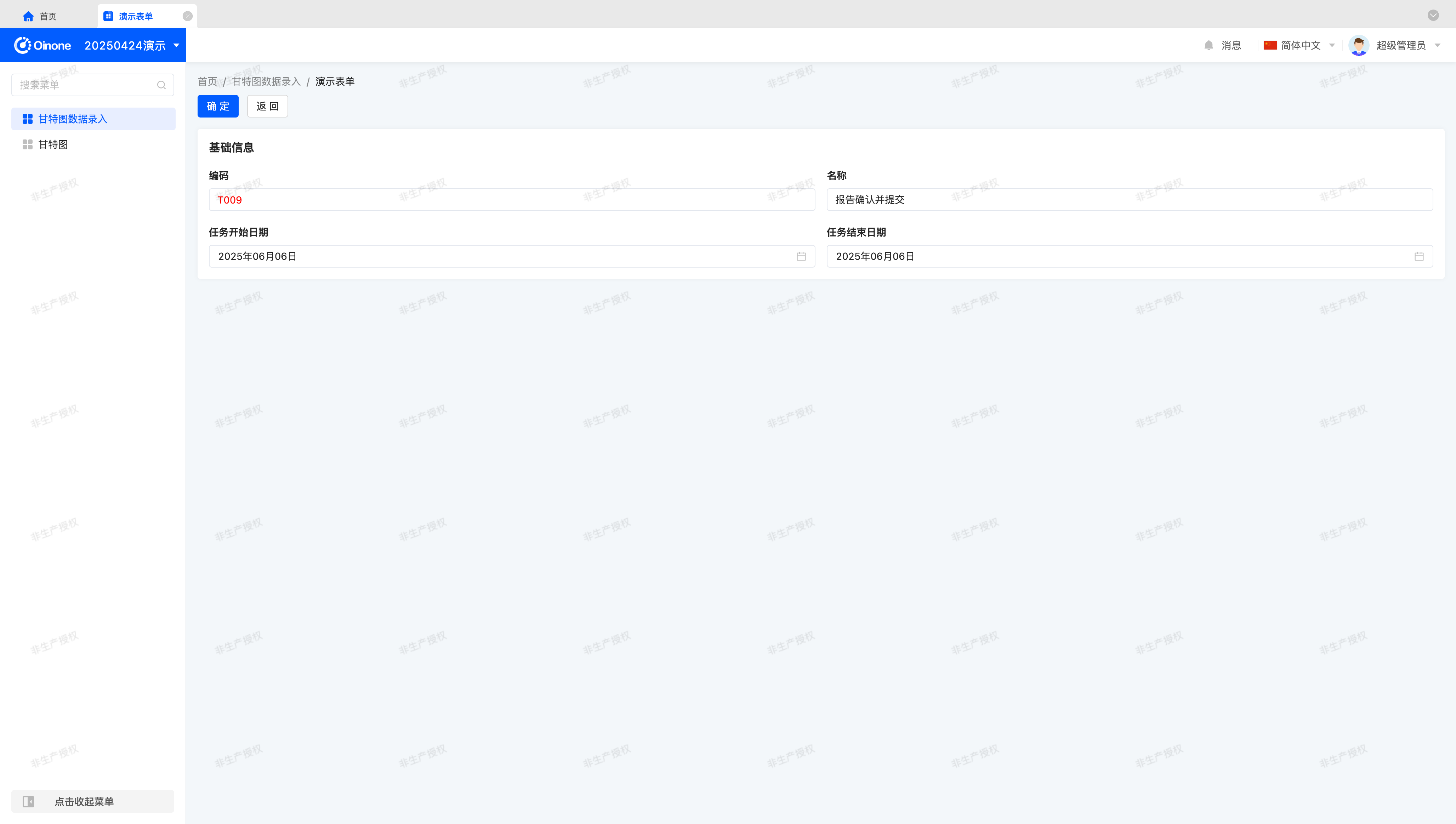 最后,让我们去 “甘特图数据录入” 页面看一下组件是否正确运行在页面上吧。