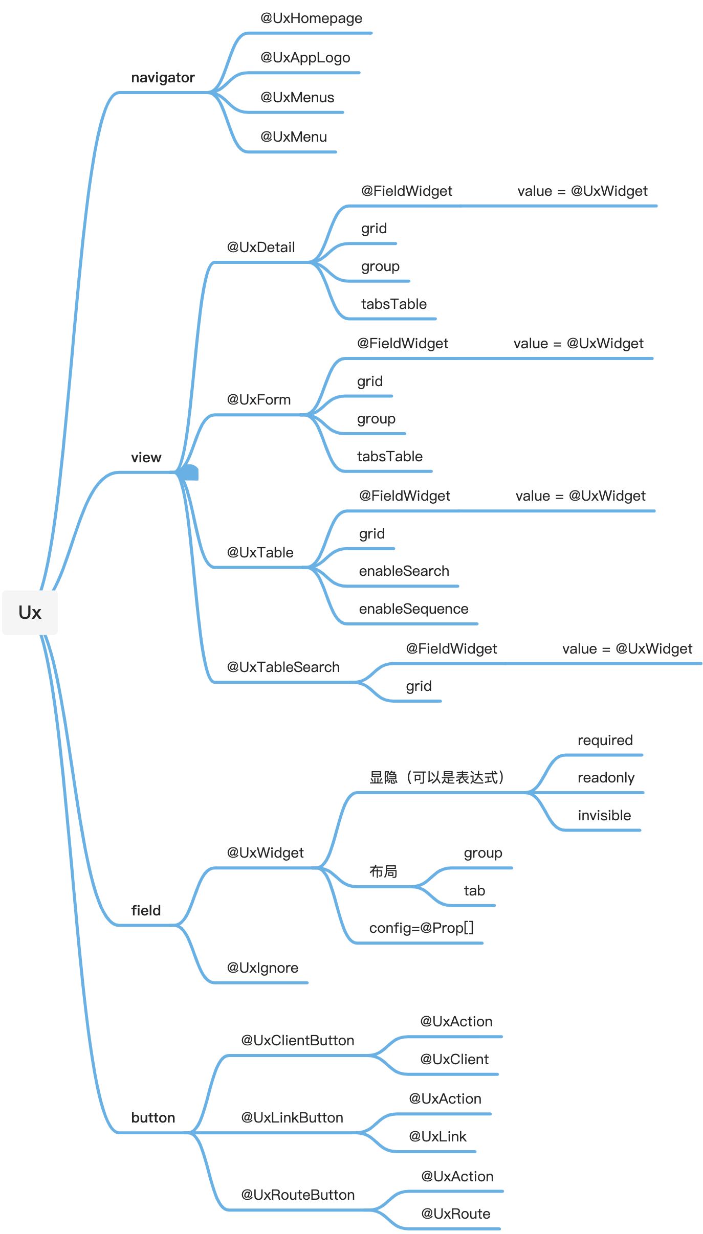 action:动作基本配置,类型为UxAction。value:客户端动作配置,类型为UxClient。- 内部注解