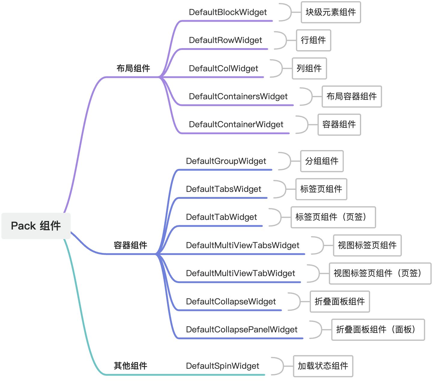 通常我们将一些用来包裹其他组件的组件通过 Pack 组件进行注册,它们也被称为 容器组件 。在具备布局能力的视图中,这类组件通常是非常有意义的。