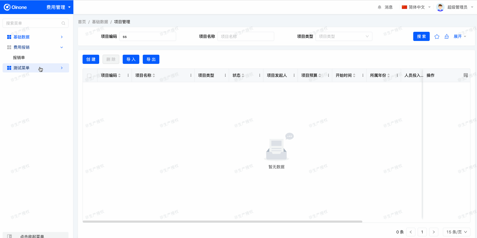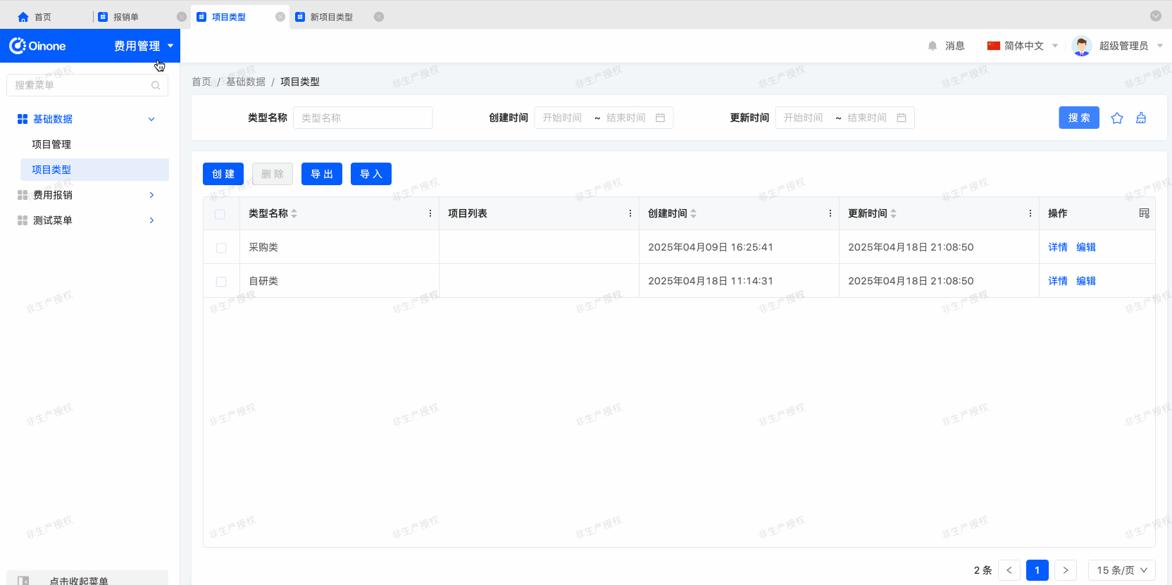 - 费用管理的模块的项目类型在新增操作时不会有消息提示