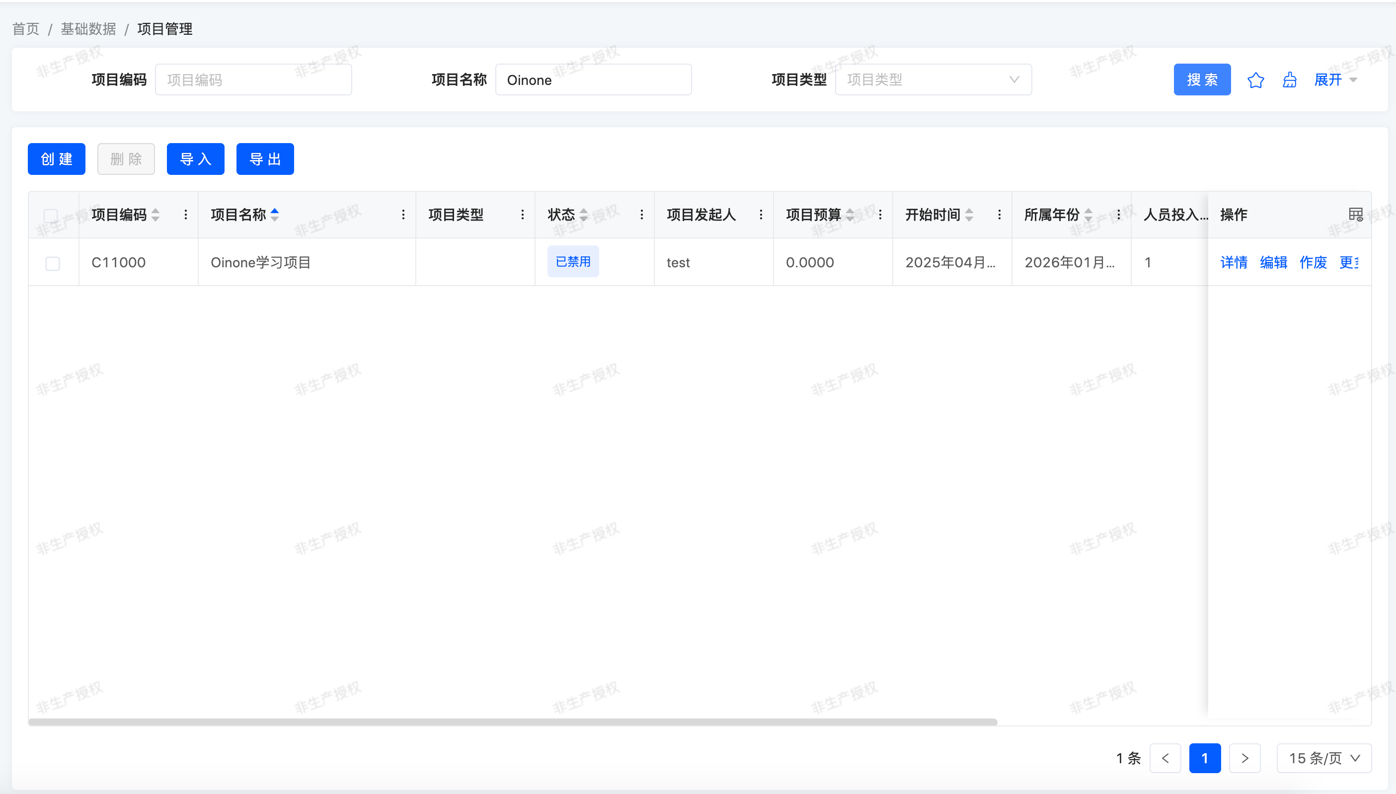 以下是包含一些费用管理-项目信息的主列表视图概述: