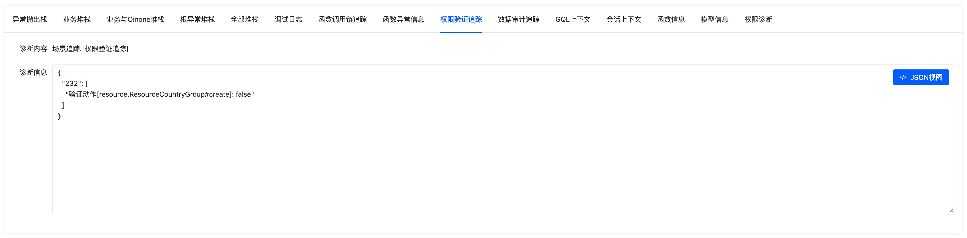 可以通过查看 “权限验证追踪” 面板提供的信息进行初步分析: