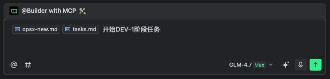 这一步需要把opsx-new.md,tasks.md 拖入对话框,然后输入:开始DEV-1