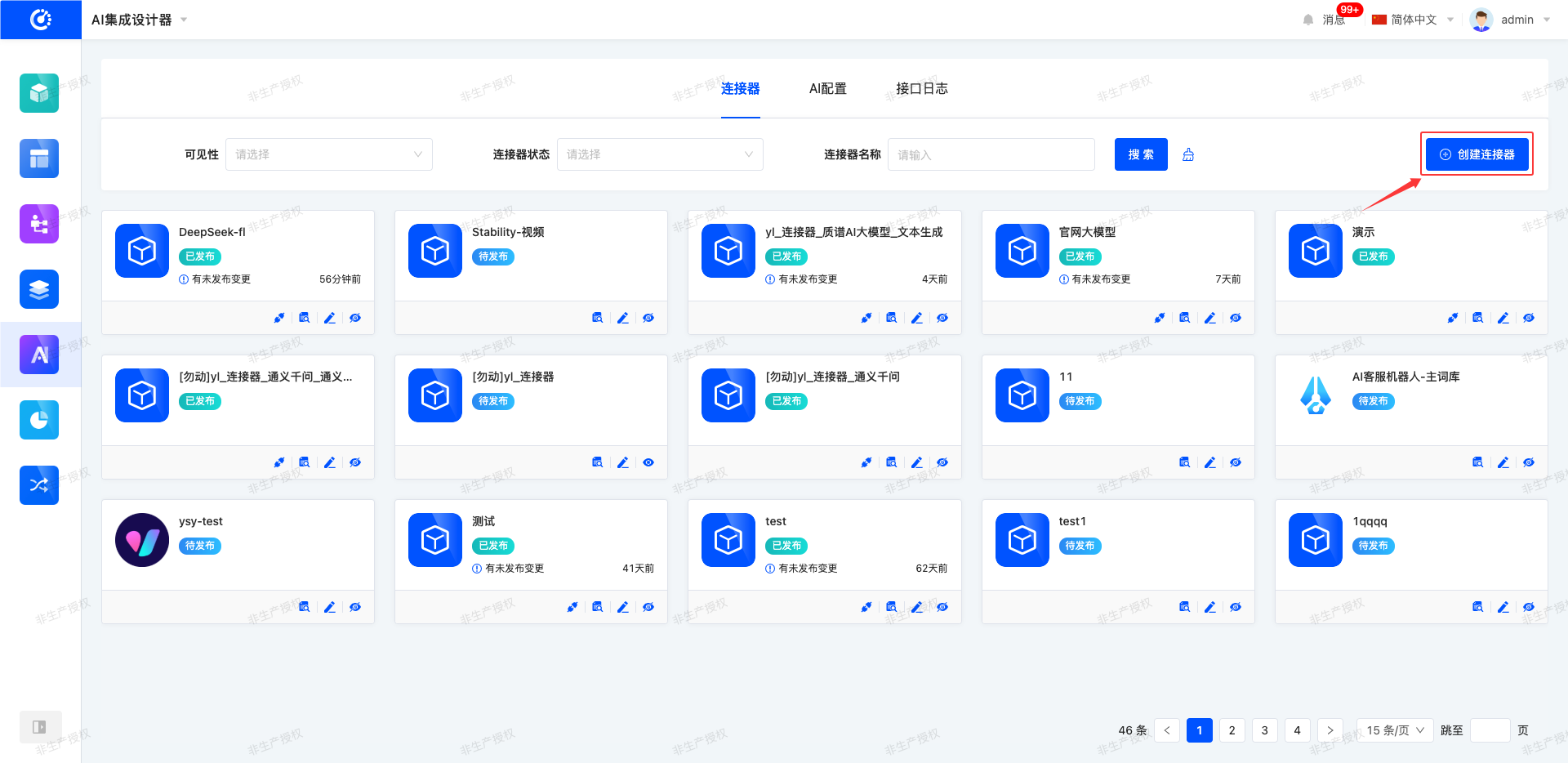 - 在设计连接器时,可在AI配置列表“点击添加”,跳转至相应页面进行创建