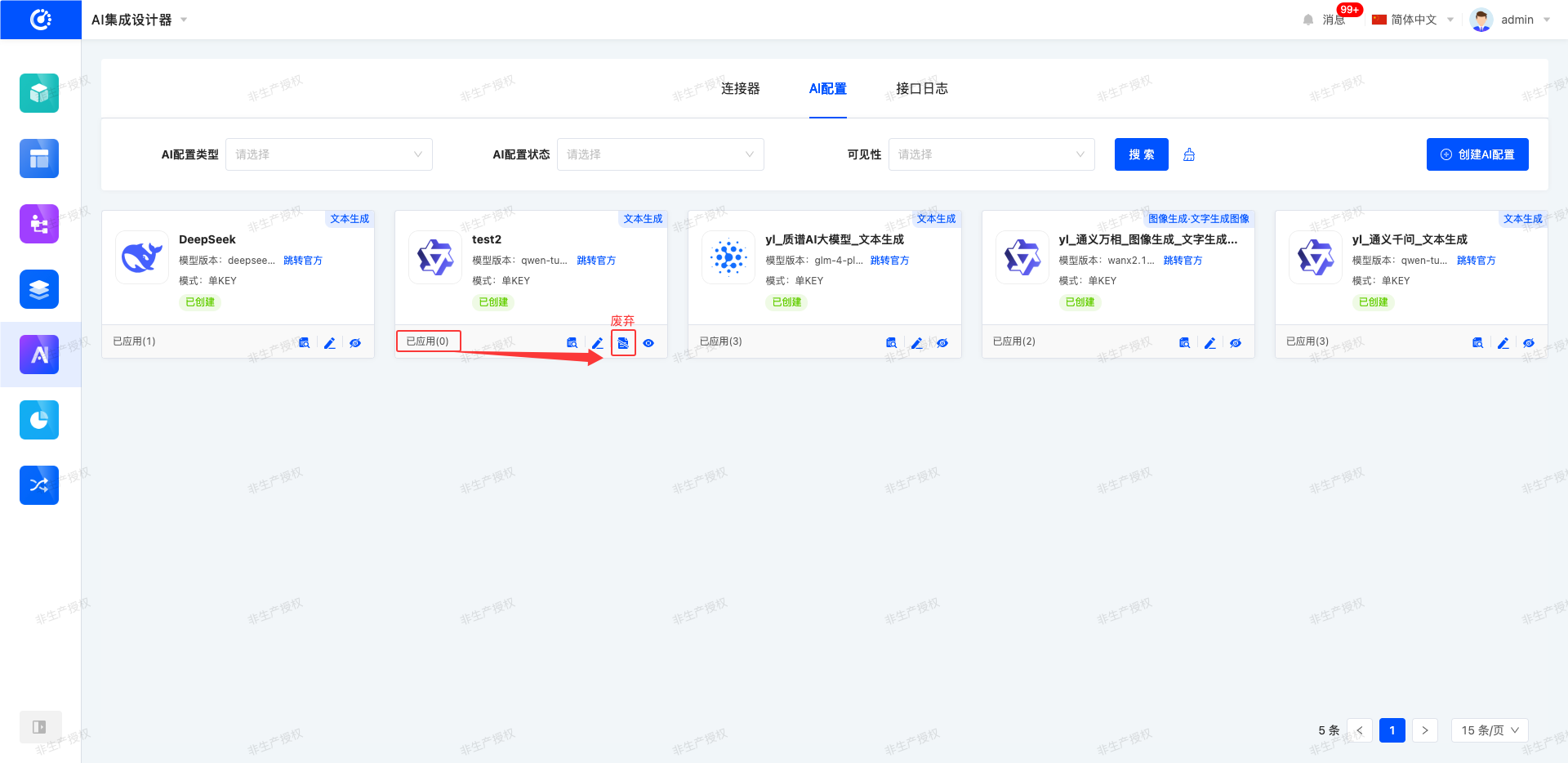 对于不再使用的AI配置,可以选择将其废除,即删除该AI配置。