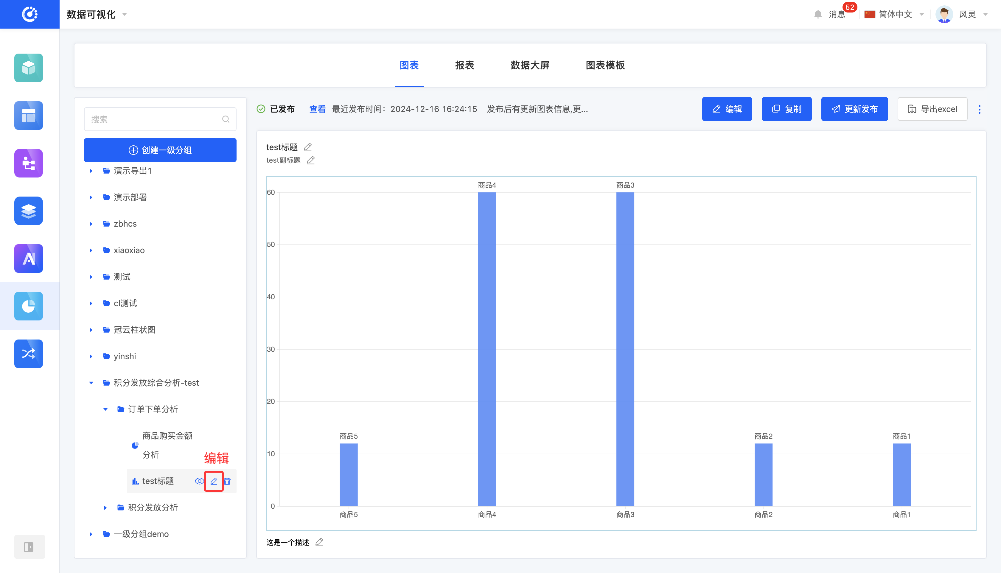 - 图表预览区:展示已设计的图表,用户可在此进行编辑、发布、导出等操作。