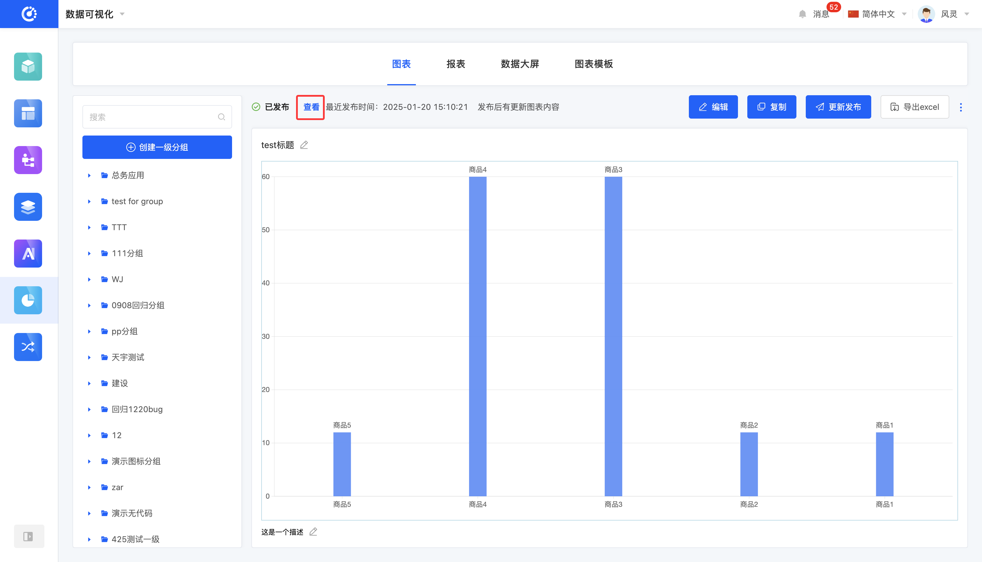 当图表发布后有更新,会在图表预览区左上方区域展示最近发布时间,可查看其最近一次发布的版本