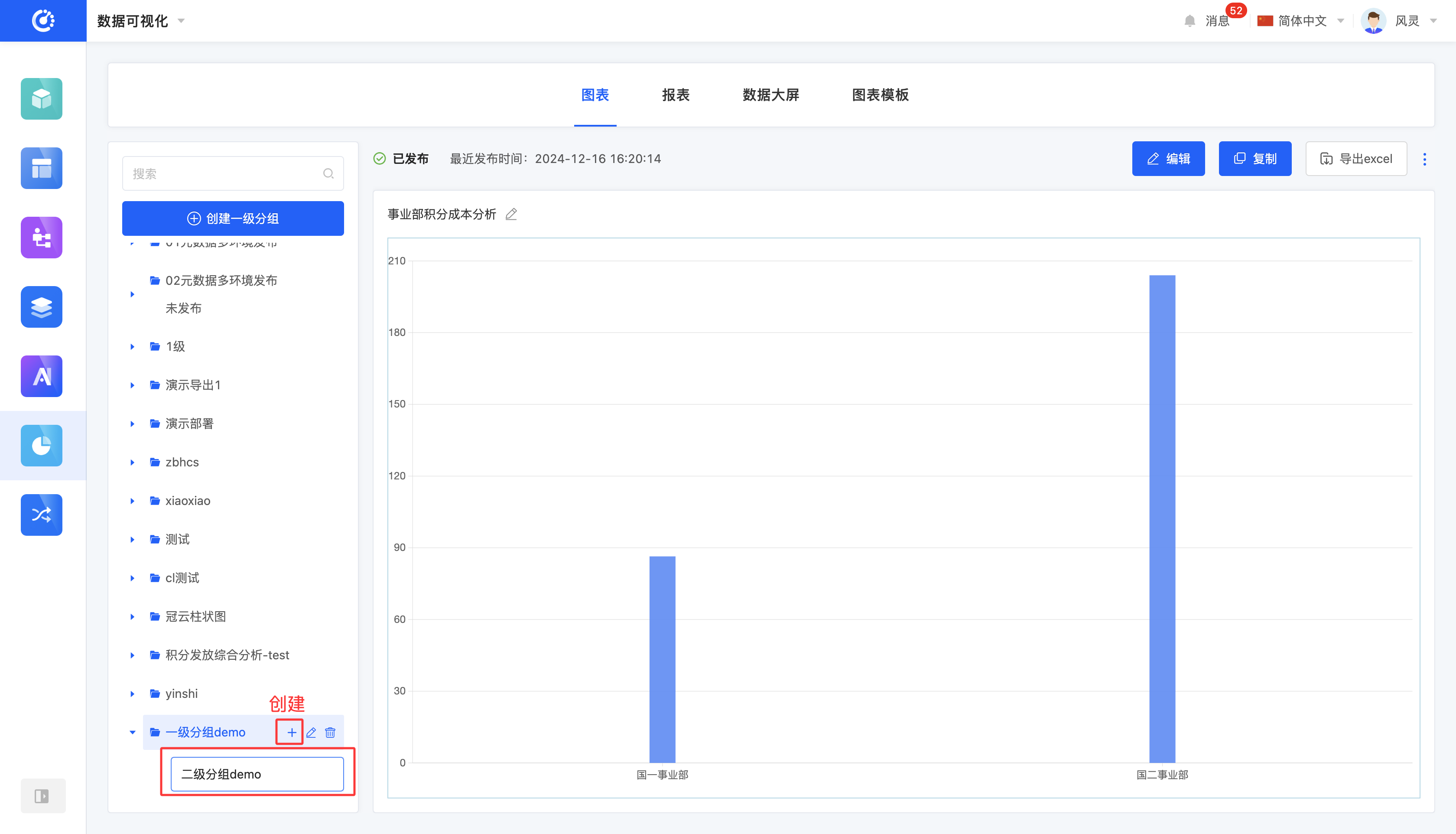 - 在图表二级分组中创建图表