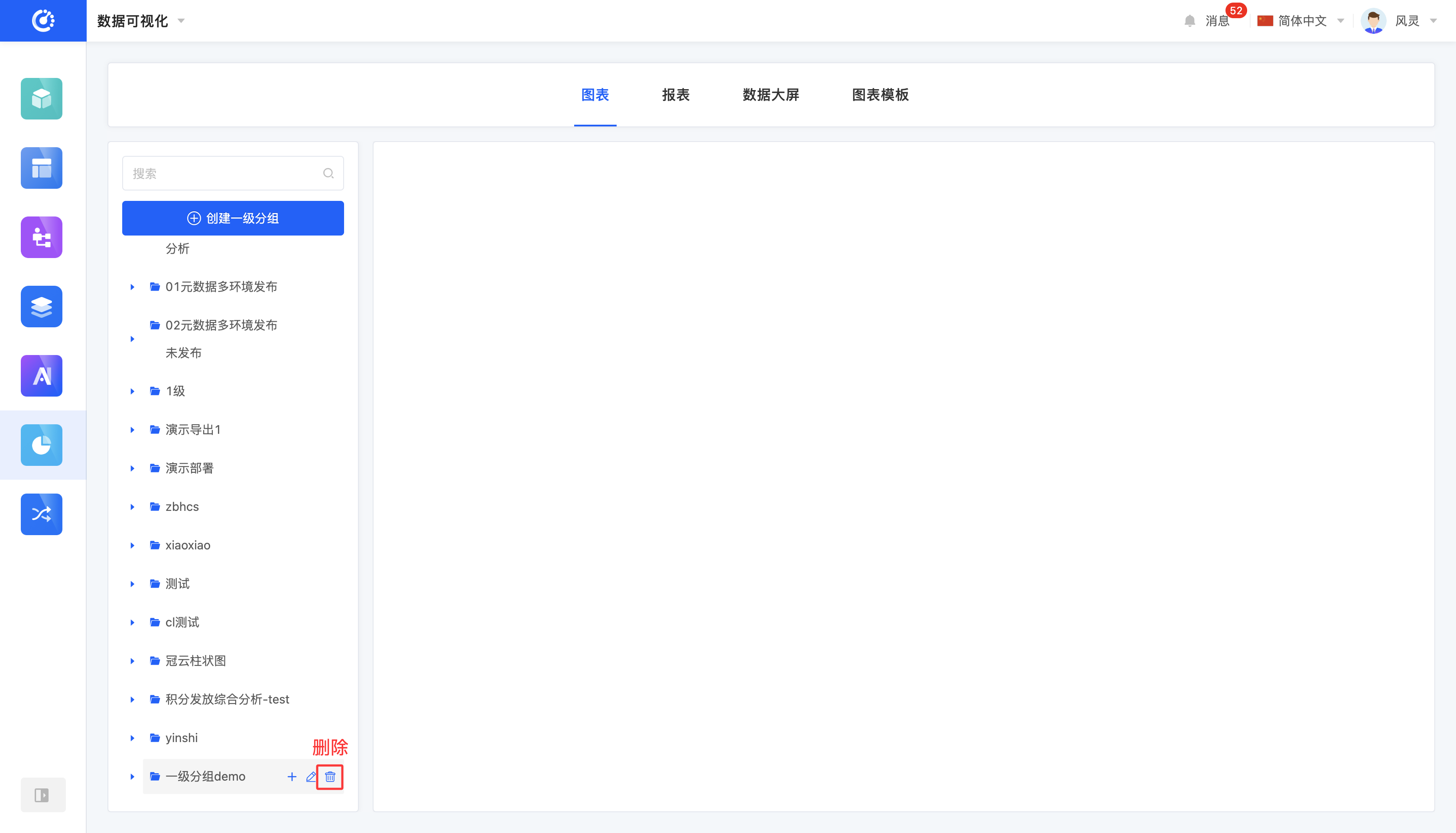 - 当分组下存在图表时,无法成功删除。