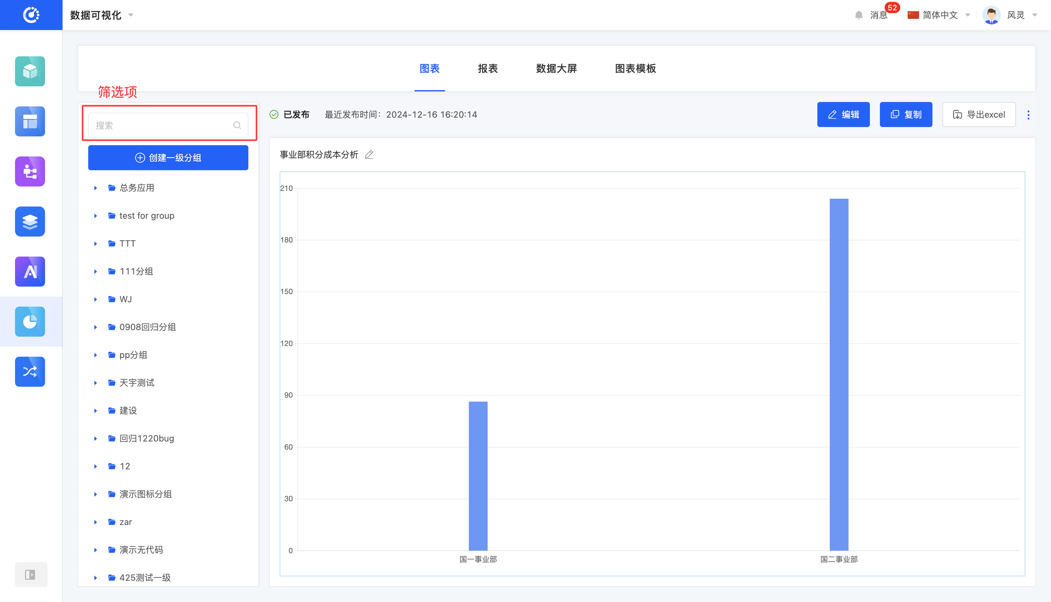 根据业务实际需求,可定制图表筛选条件。输入图表或分组名称后,系统能精确筛选所需项,便于后续操作。