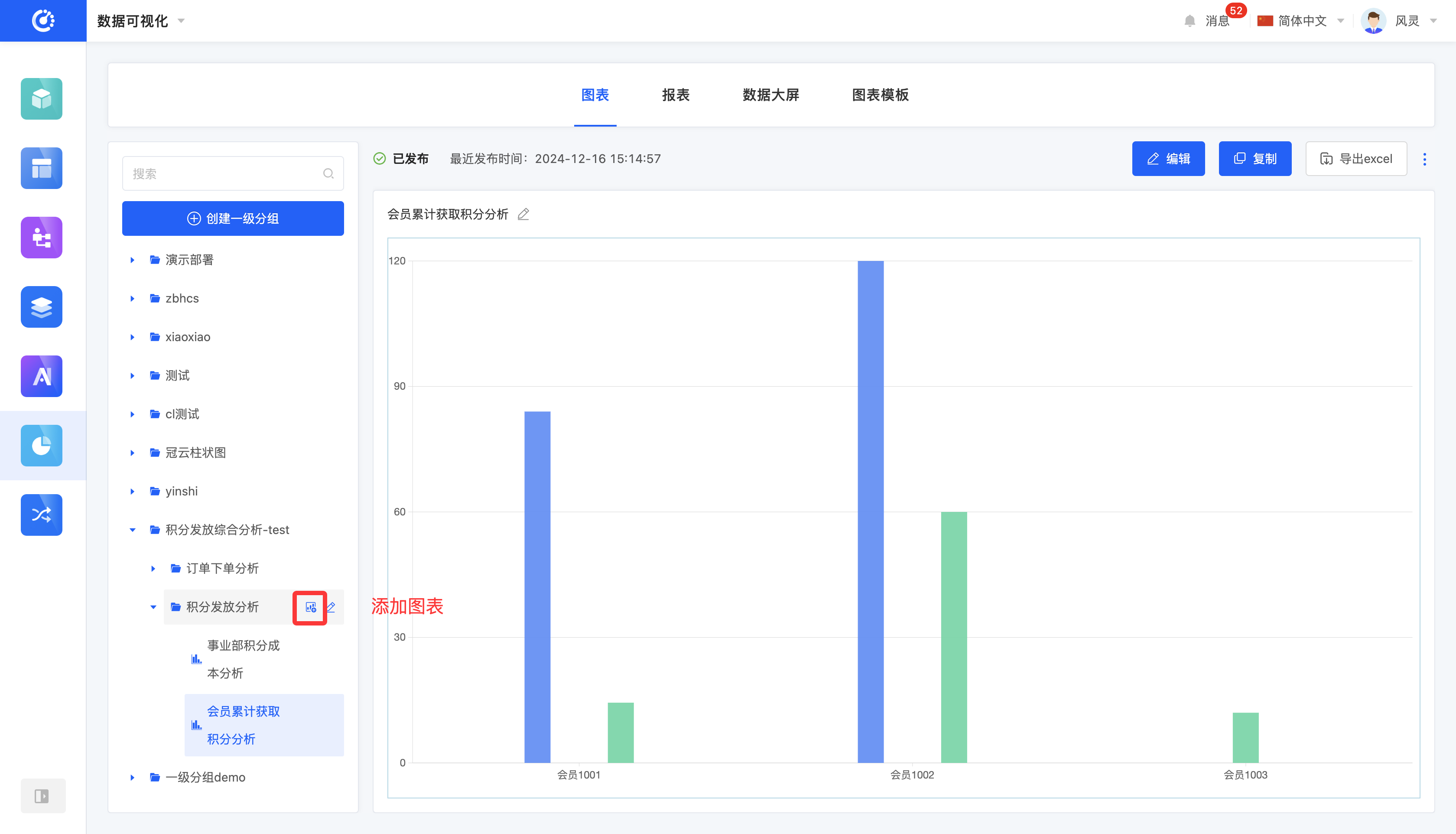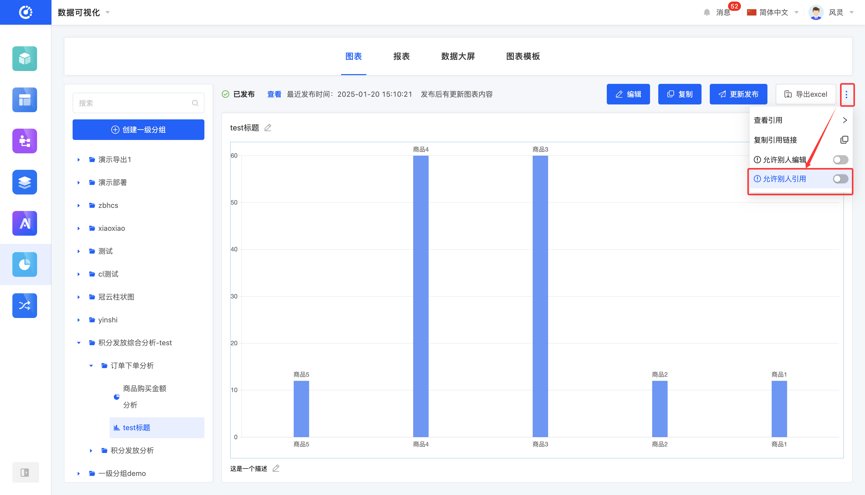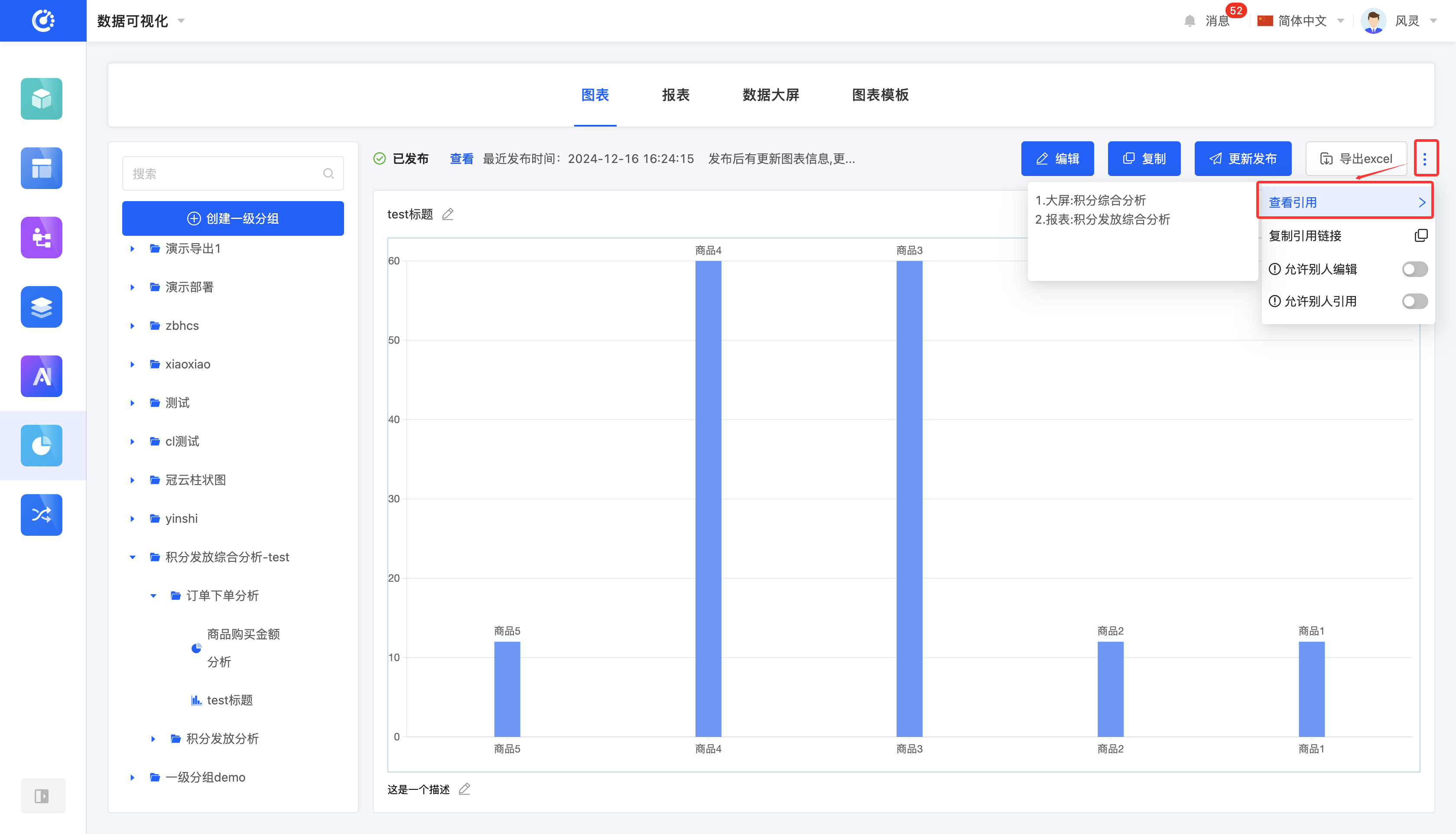 当图表未发布但已保存时,可以在报表以及数据大屏中引用该图表。