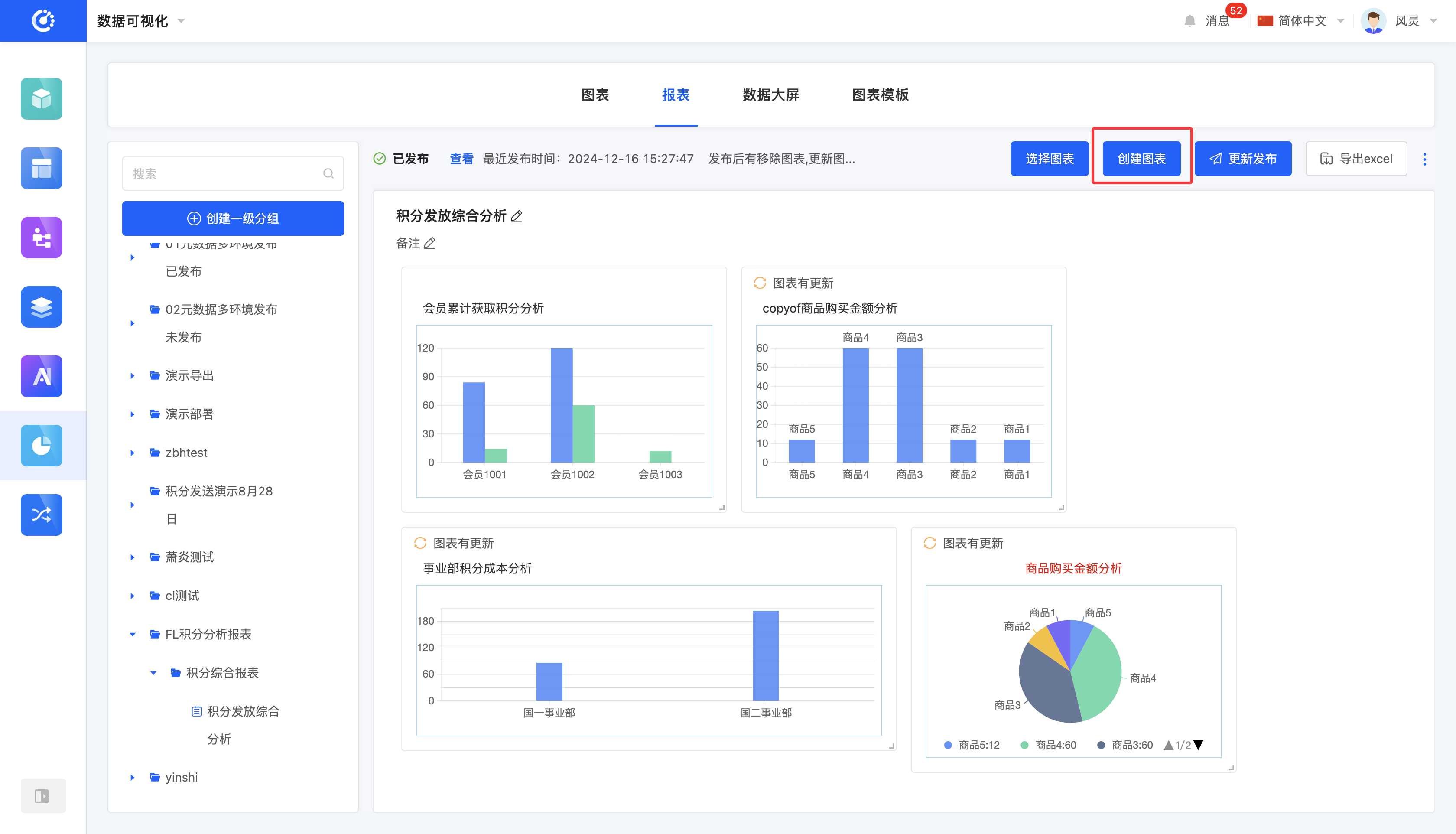 - 在报表中点击「创建图表」,输入信息后即可成功创建。