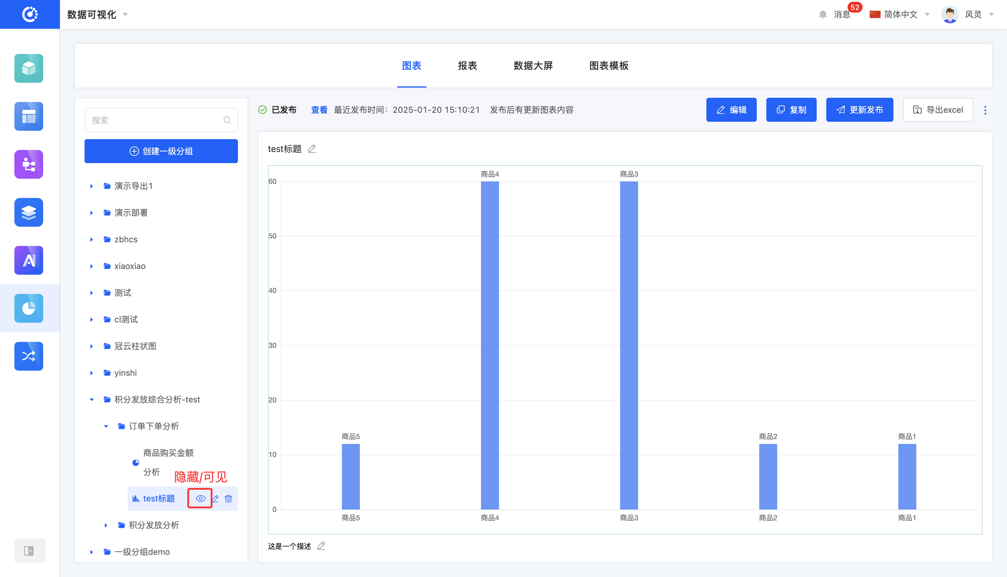 - 对于已发布的图表,隐藏后不可编辑