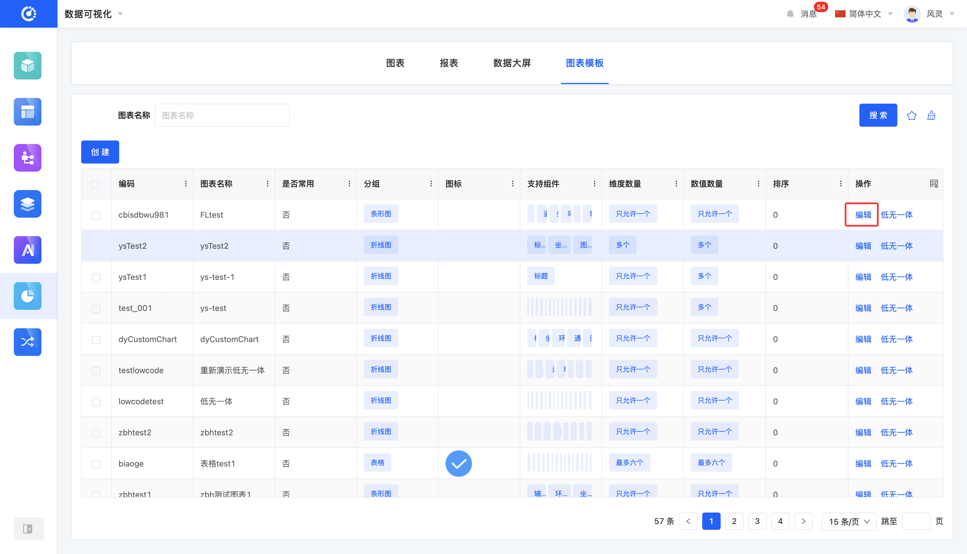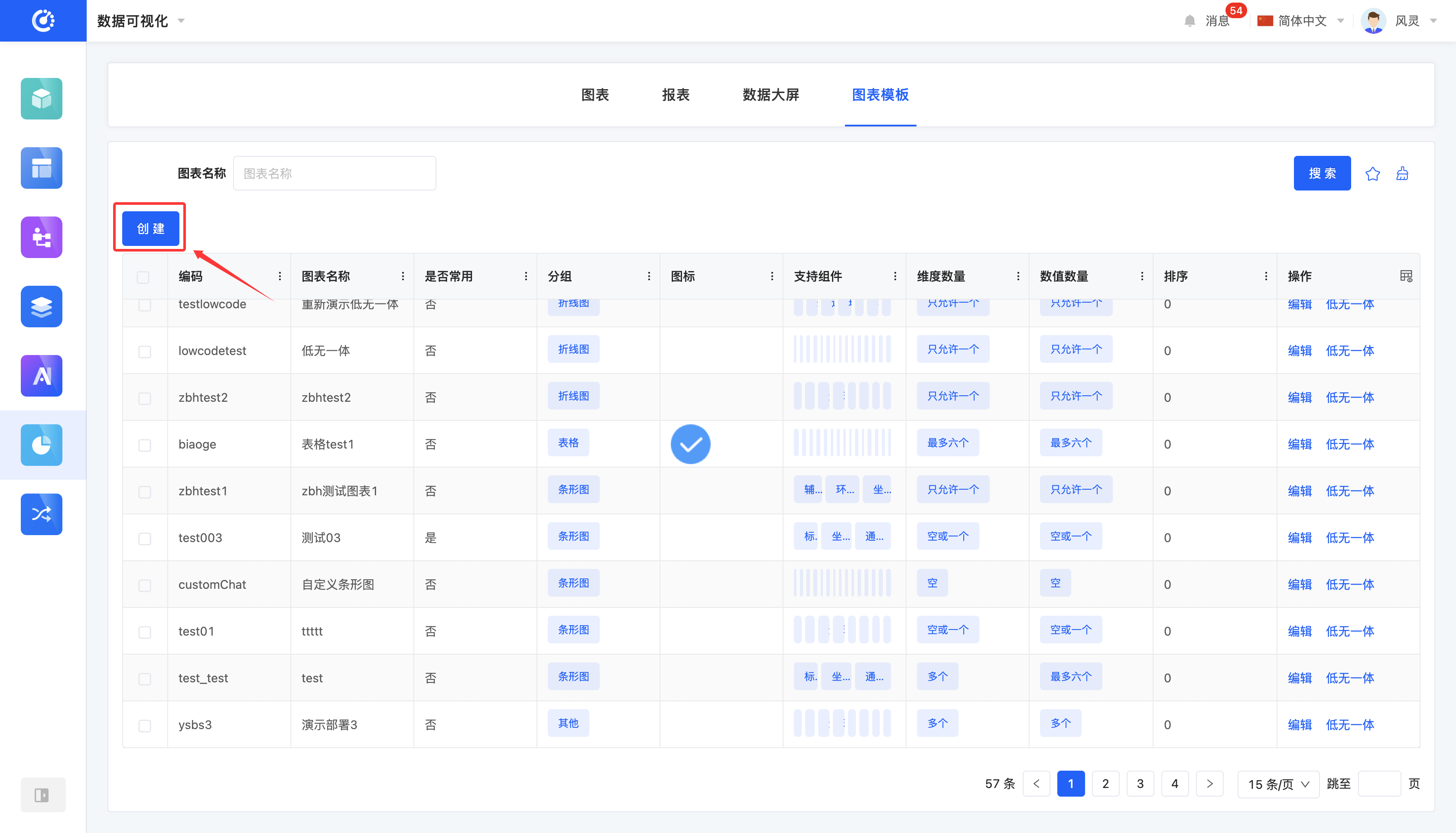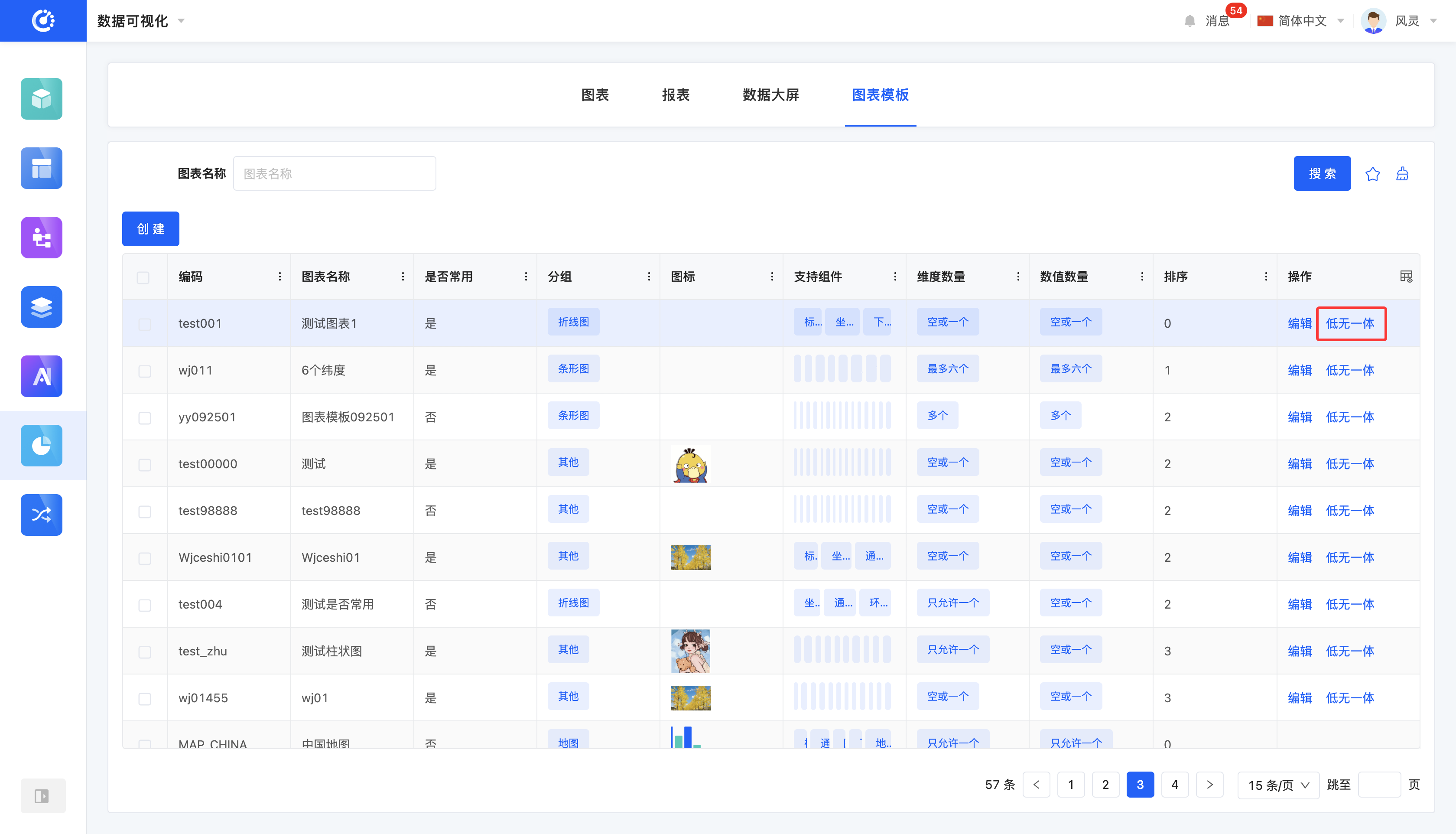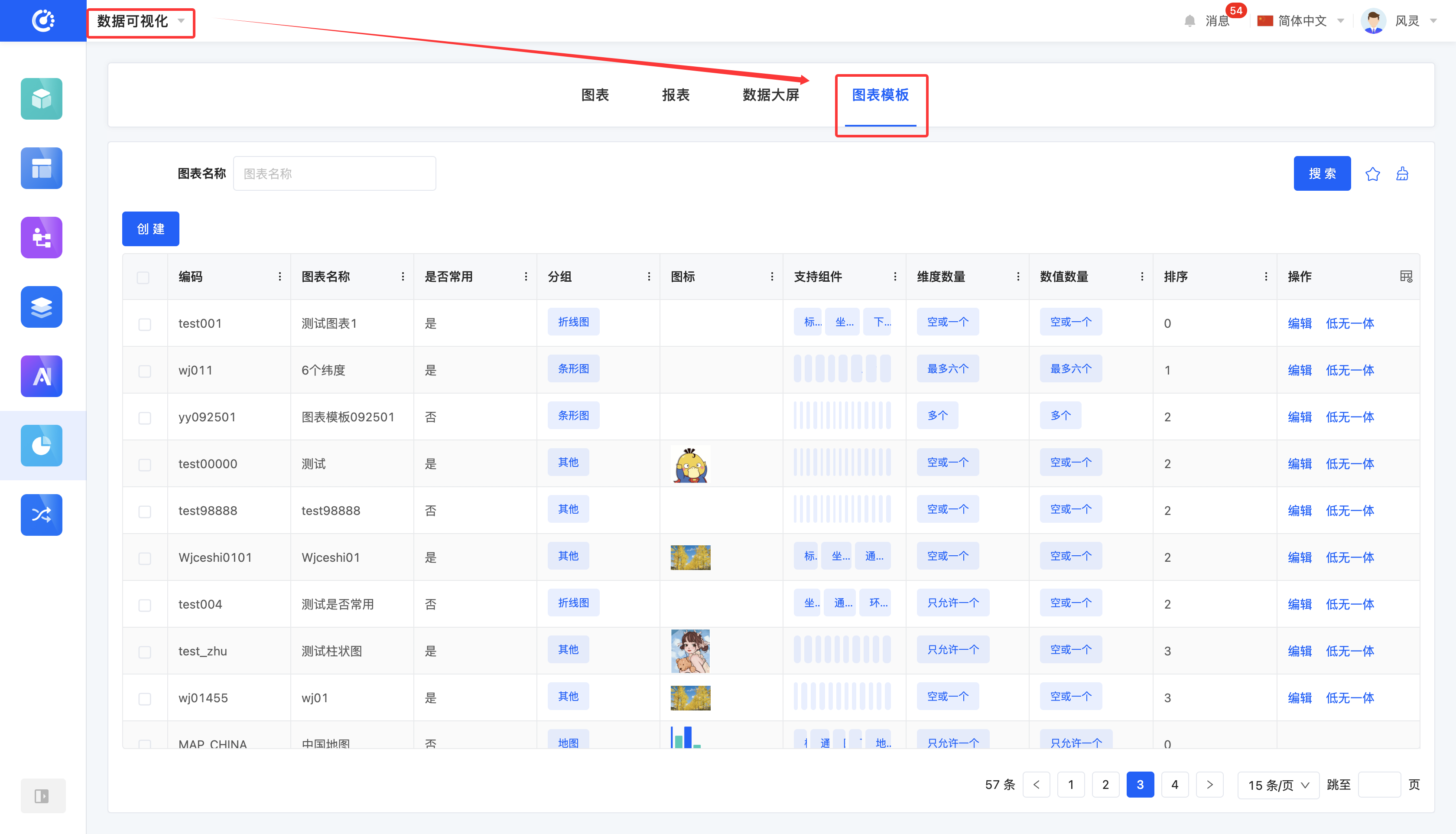 进入数据可视化的「图表模板」页面,可以对自定义的图表模板进行管理