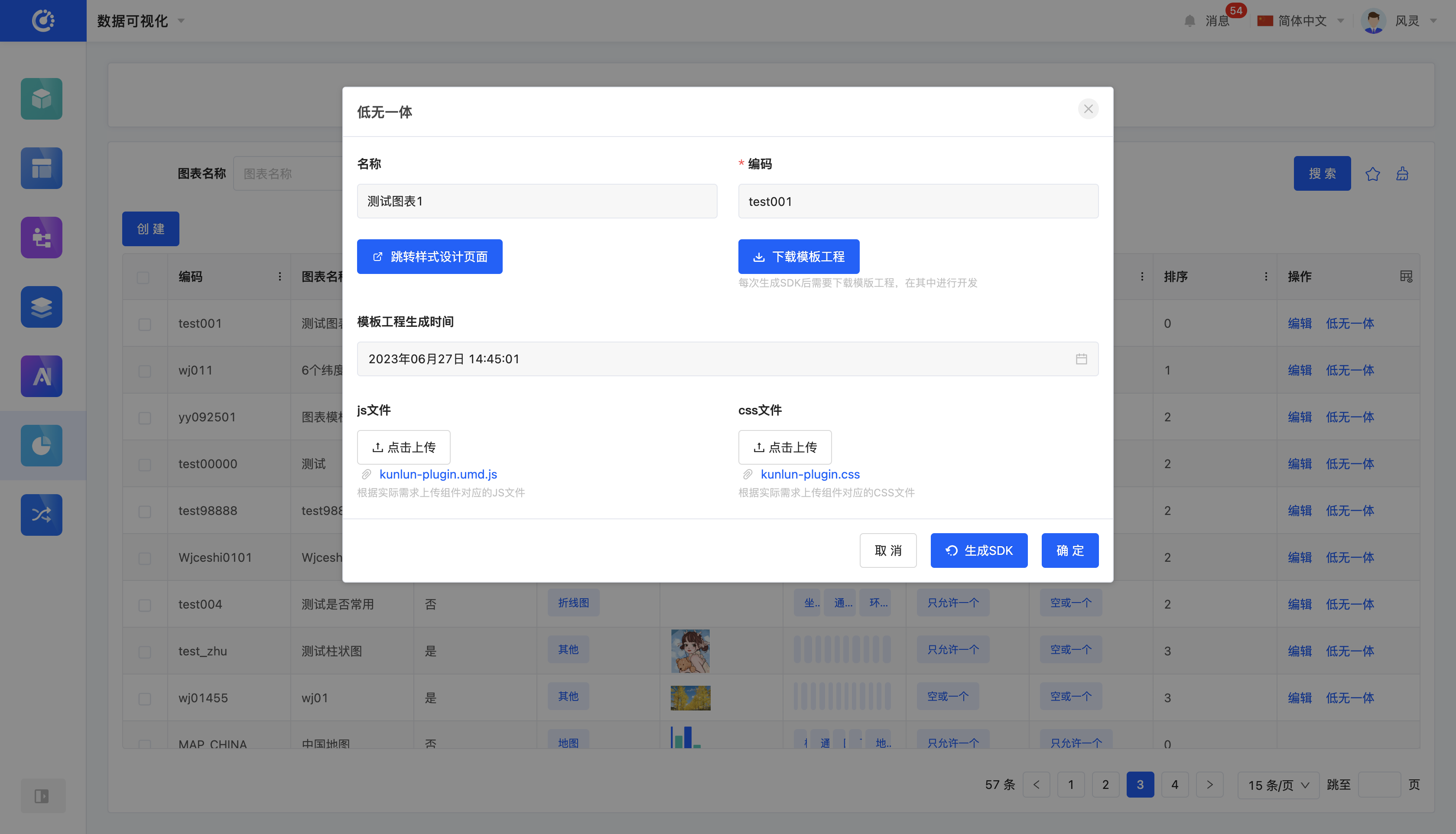 - 如果首次进入该图表模板,或模板样式发生了变更,需点击「生成SDK」,生成对应的SDK