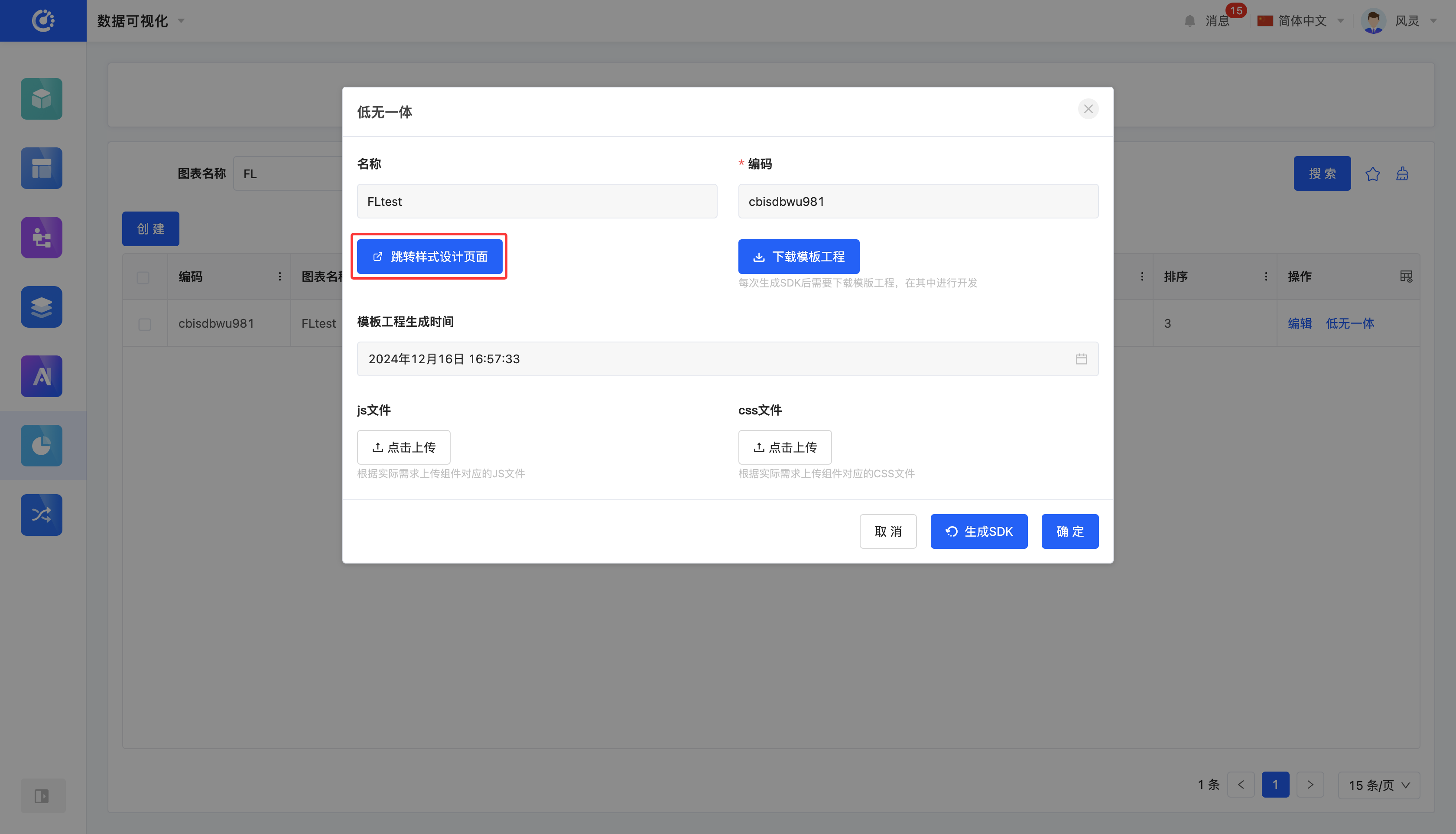 点击「低无一体」-「跳转样式设计页面」,可跳转至界面设计器对图表模板样式进行设计。