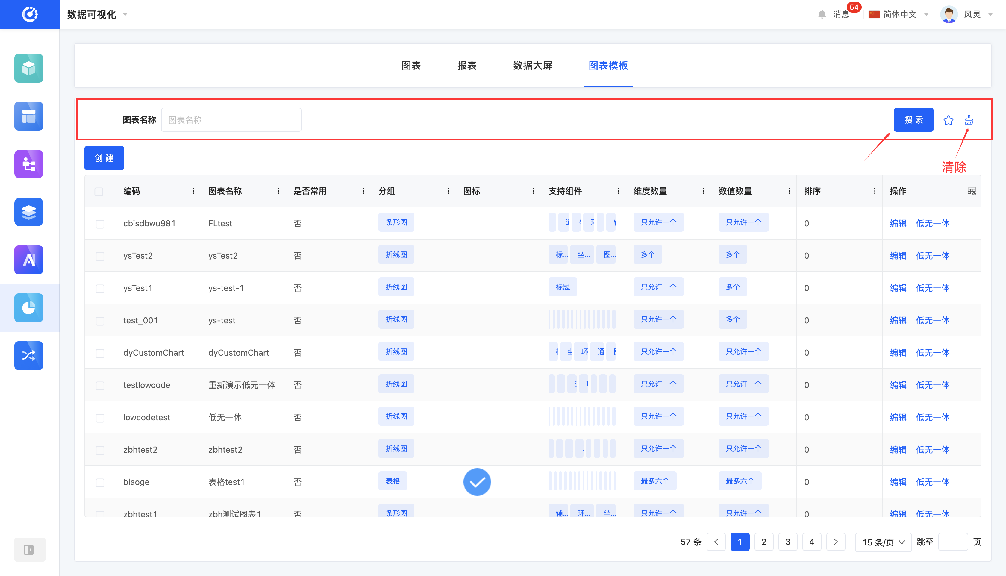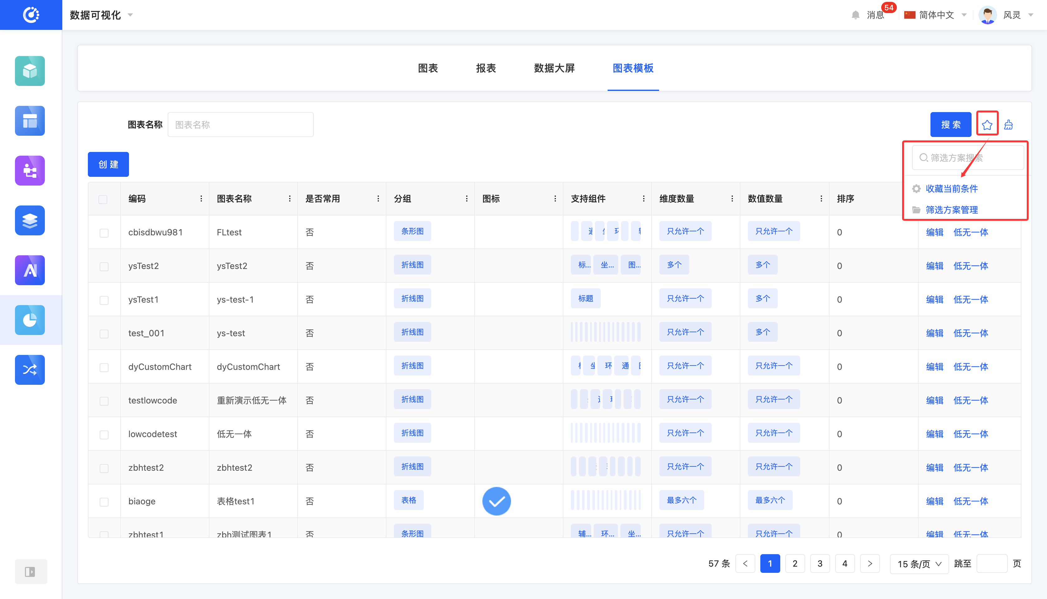 根据实际业务需求,可以定制图表模板筛选条件。在当前的筛选条件下,将展示相应的图表模板列表,方便查看和编辑对不同的图表模板。