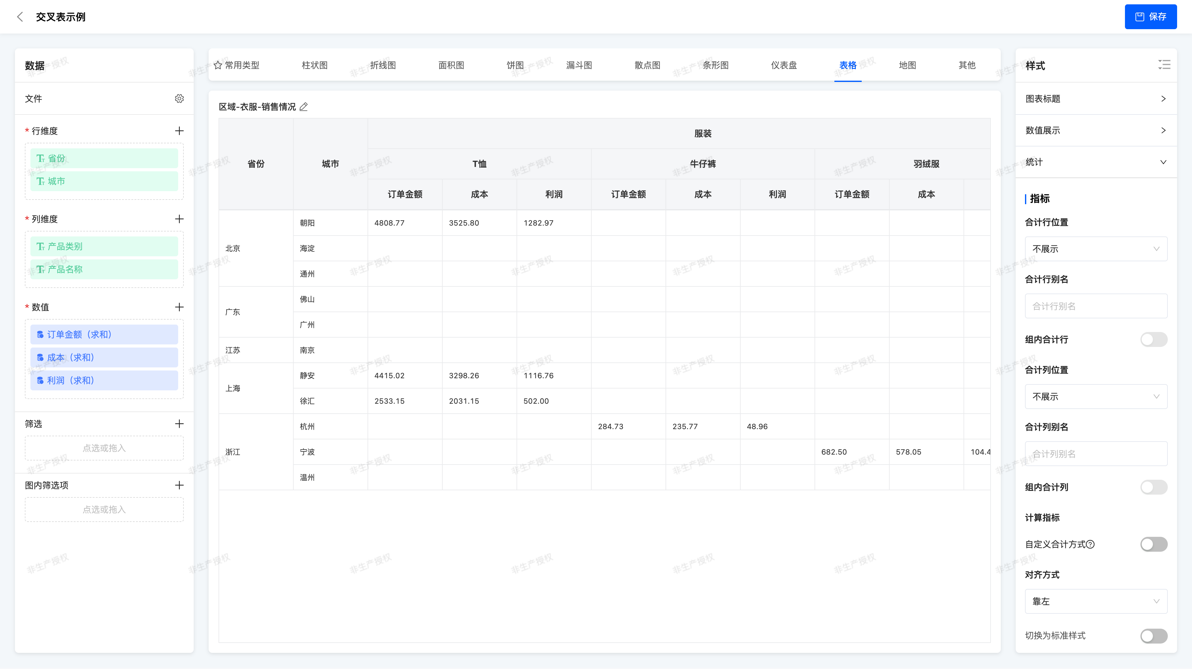 - 行维度:用于纵向分类展示,如「省份 > 城市」结构