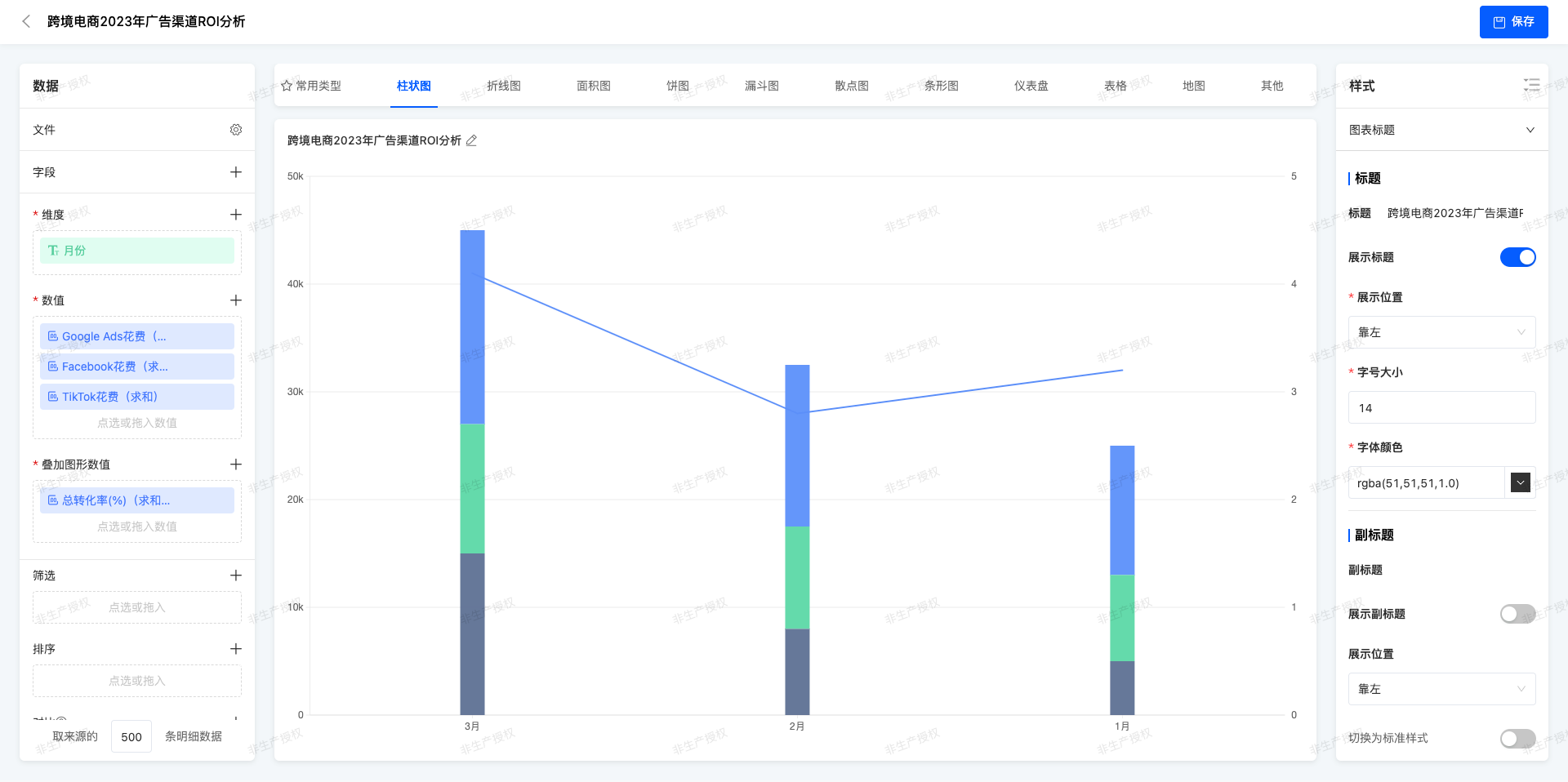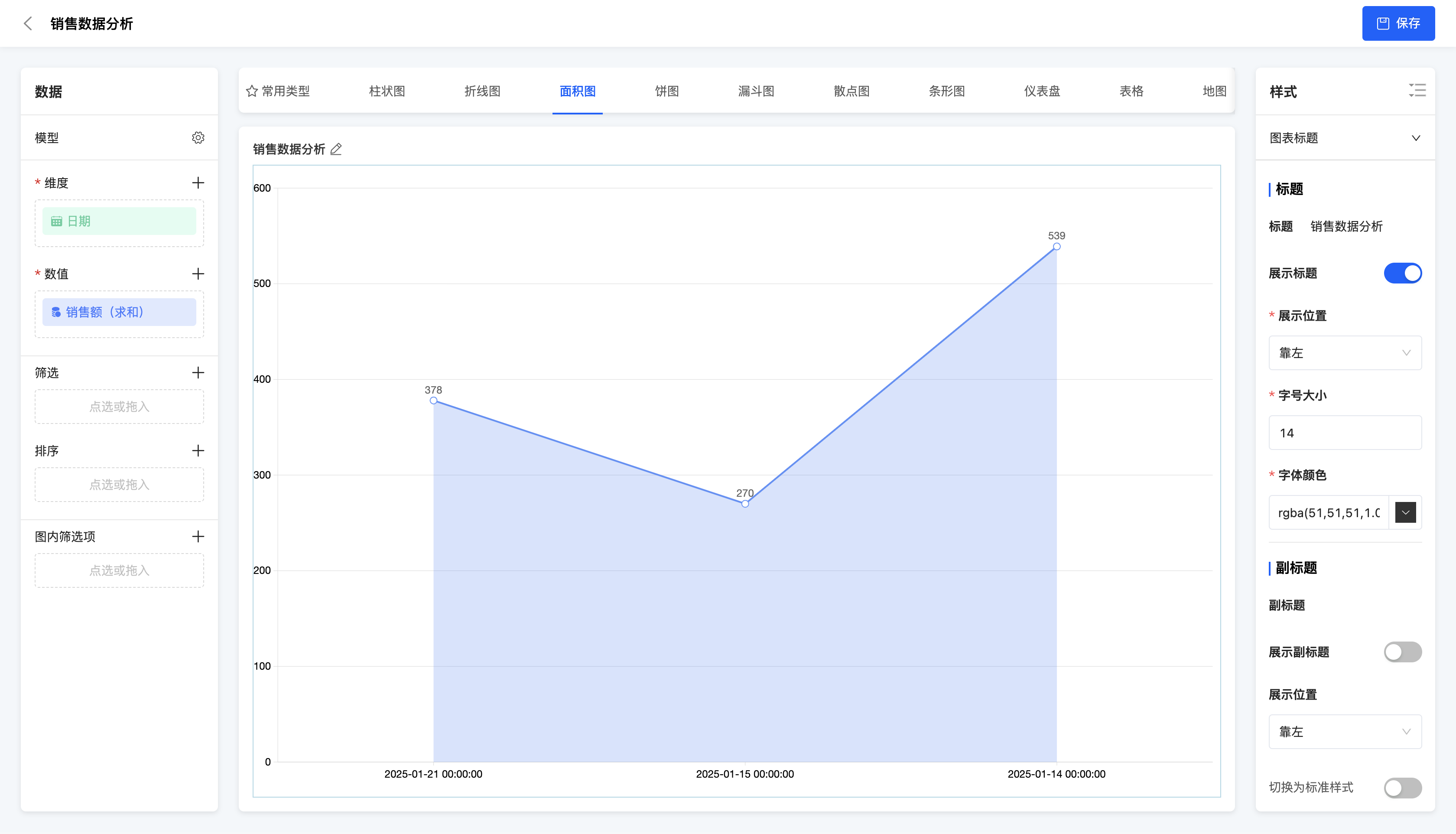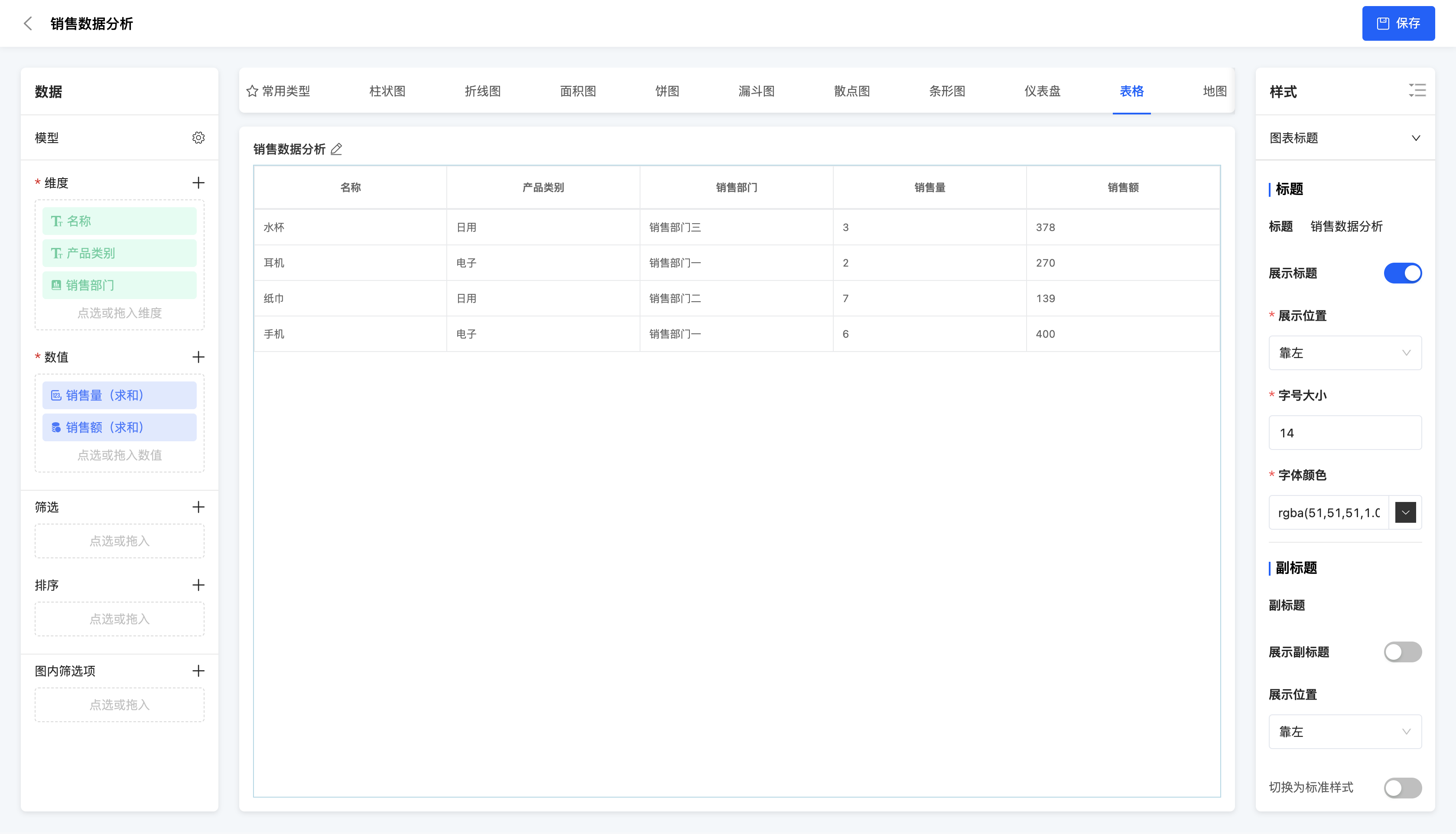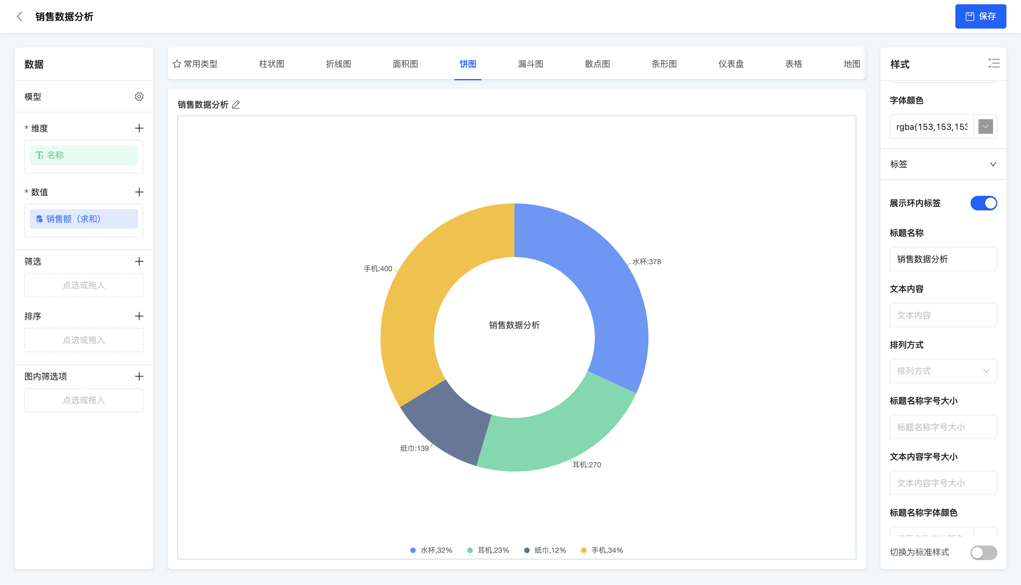 - 数据格式:标准数值 / 千分位 / 百分比 / 自定义单位