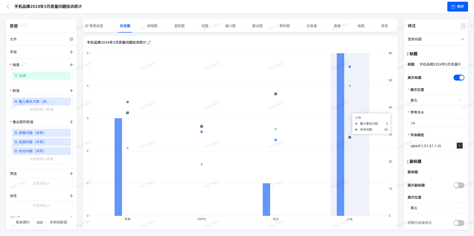 - 数据配置——气泡颜色:仅限选择维度,表示区分不同类别