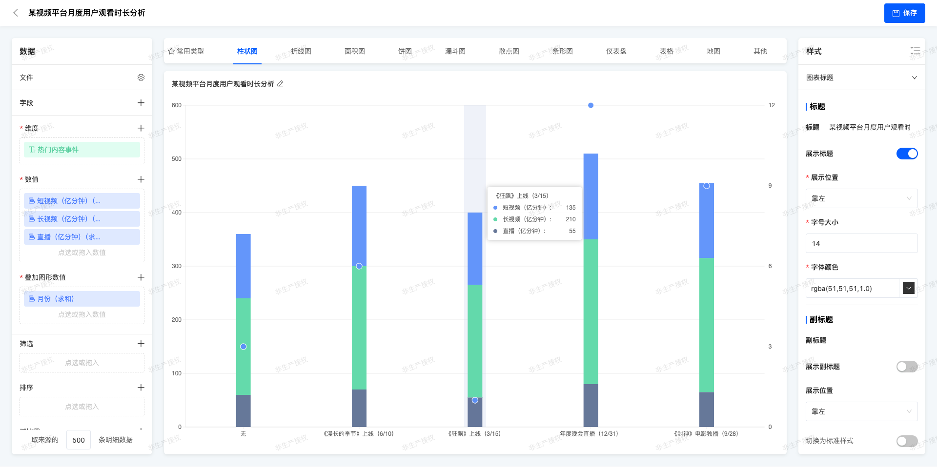 - 数据配置——更多展示字段:可选择维度字段与数值字段,选定后可在图表中显示字段数据