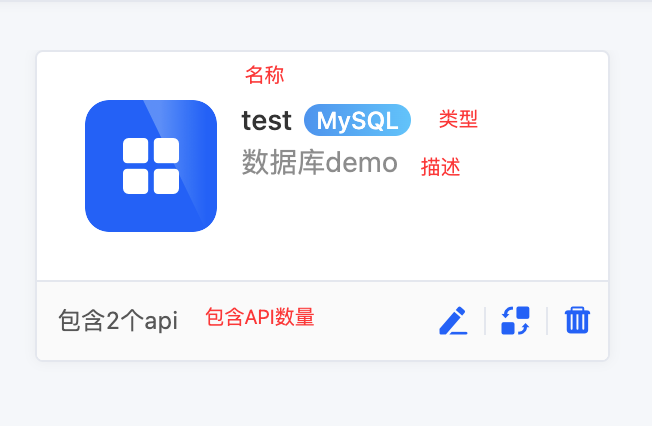 - 对于数据库,点击「新增API」,在弹出的页面中填写信息后保存,即可新增成功。