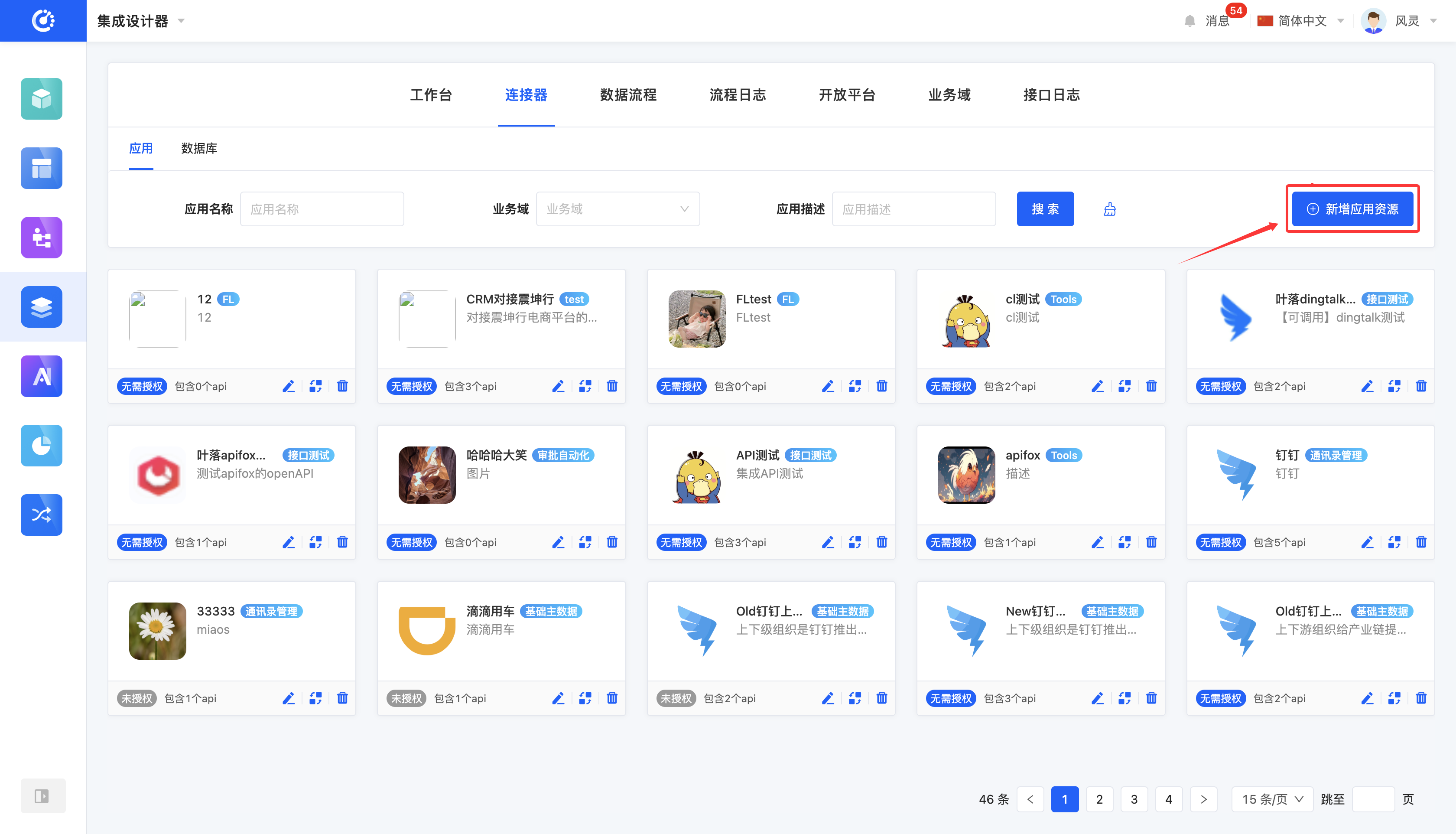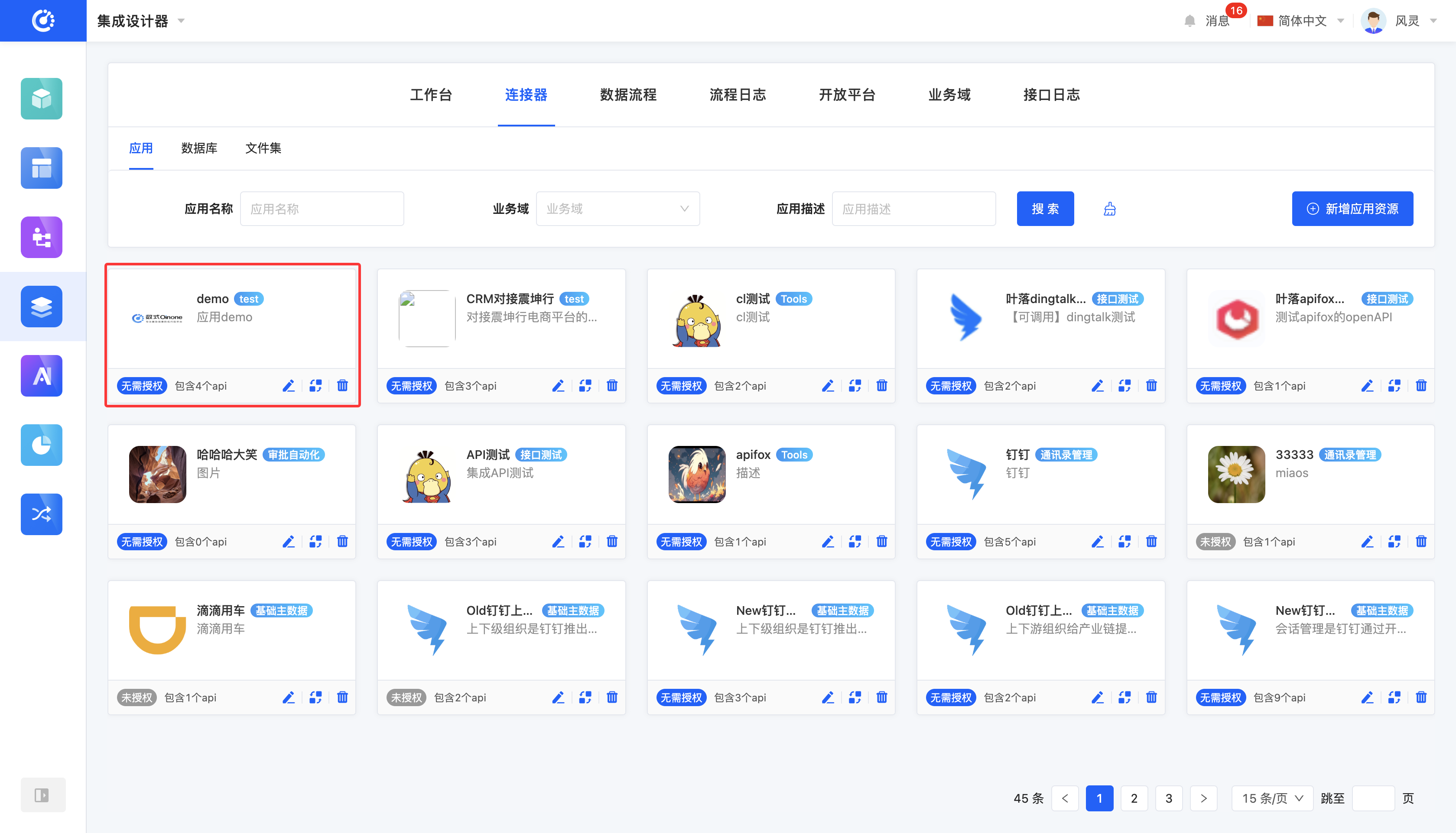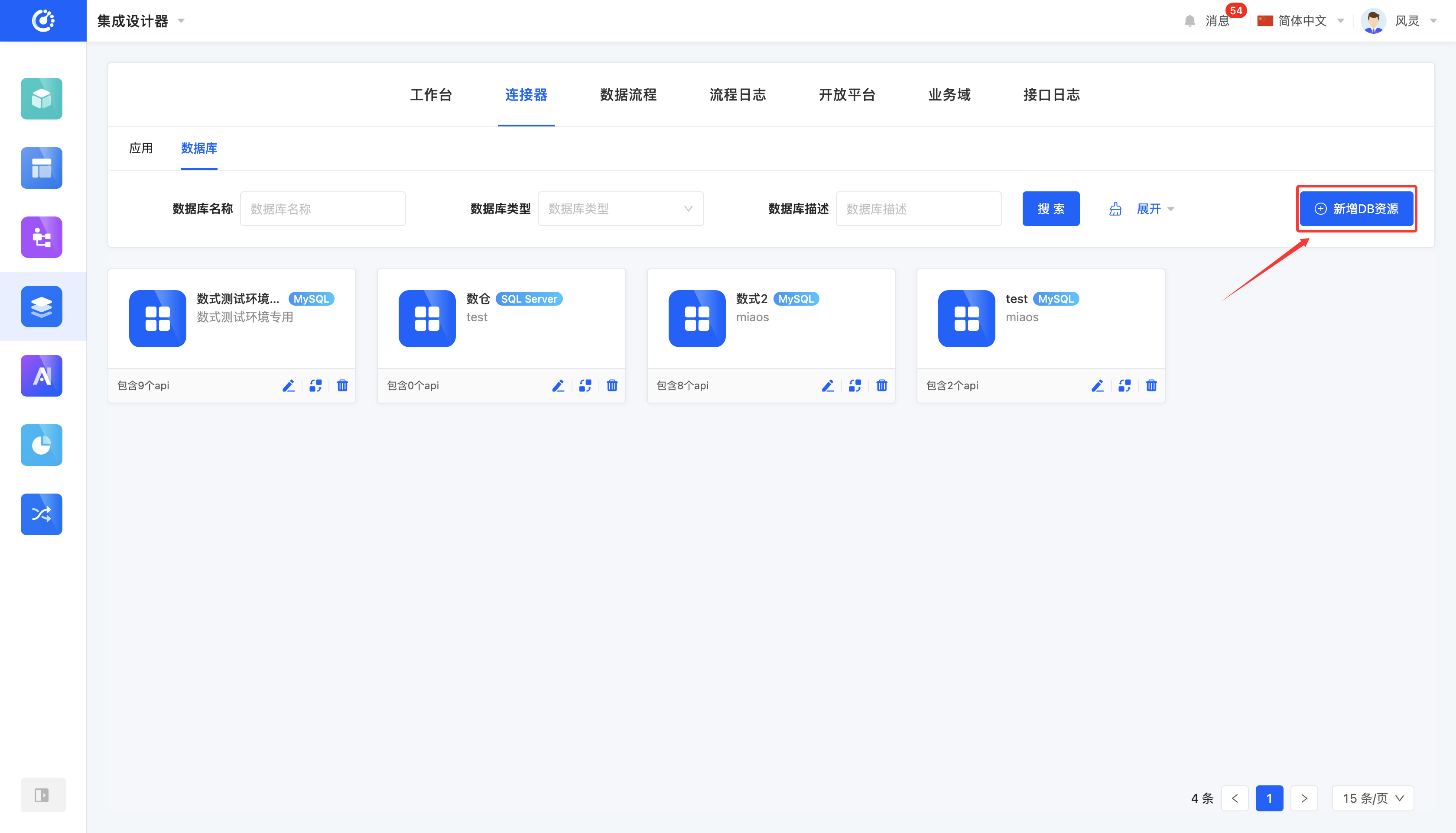 除此之外,无论是 API 还是数据库接口,都可以在【集成应用 → 集成接口】中直接进行测试,从而实现接口调试与应用集成的无缝衔接。