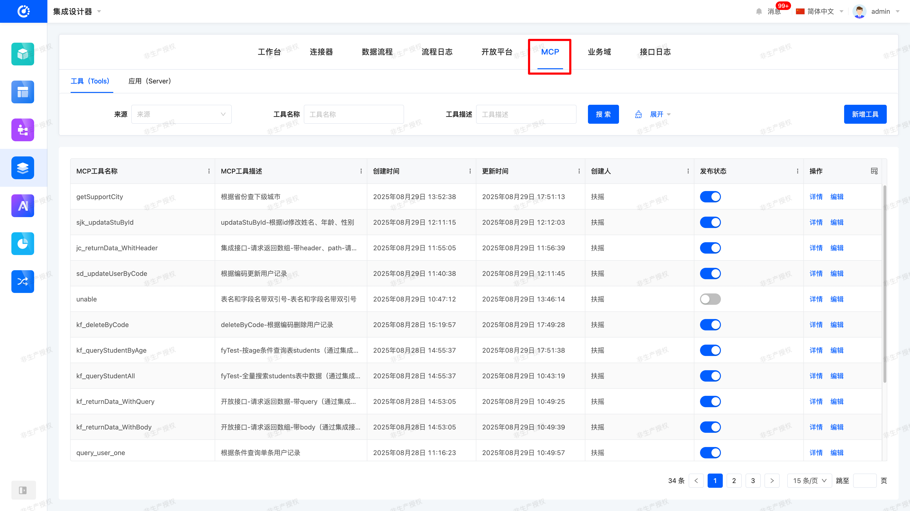 操作路径:【集成设计器 → MCP → 工具 → 新增工具】