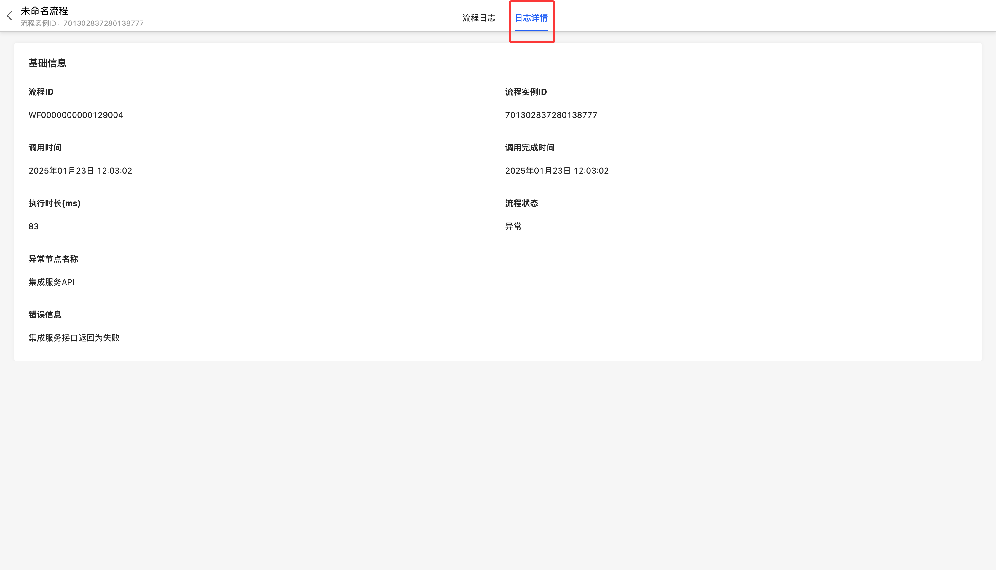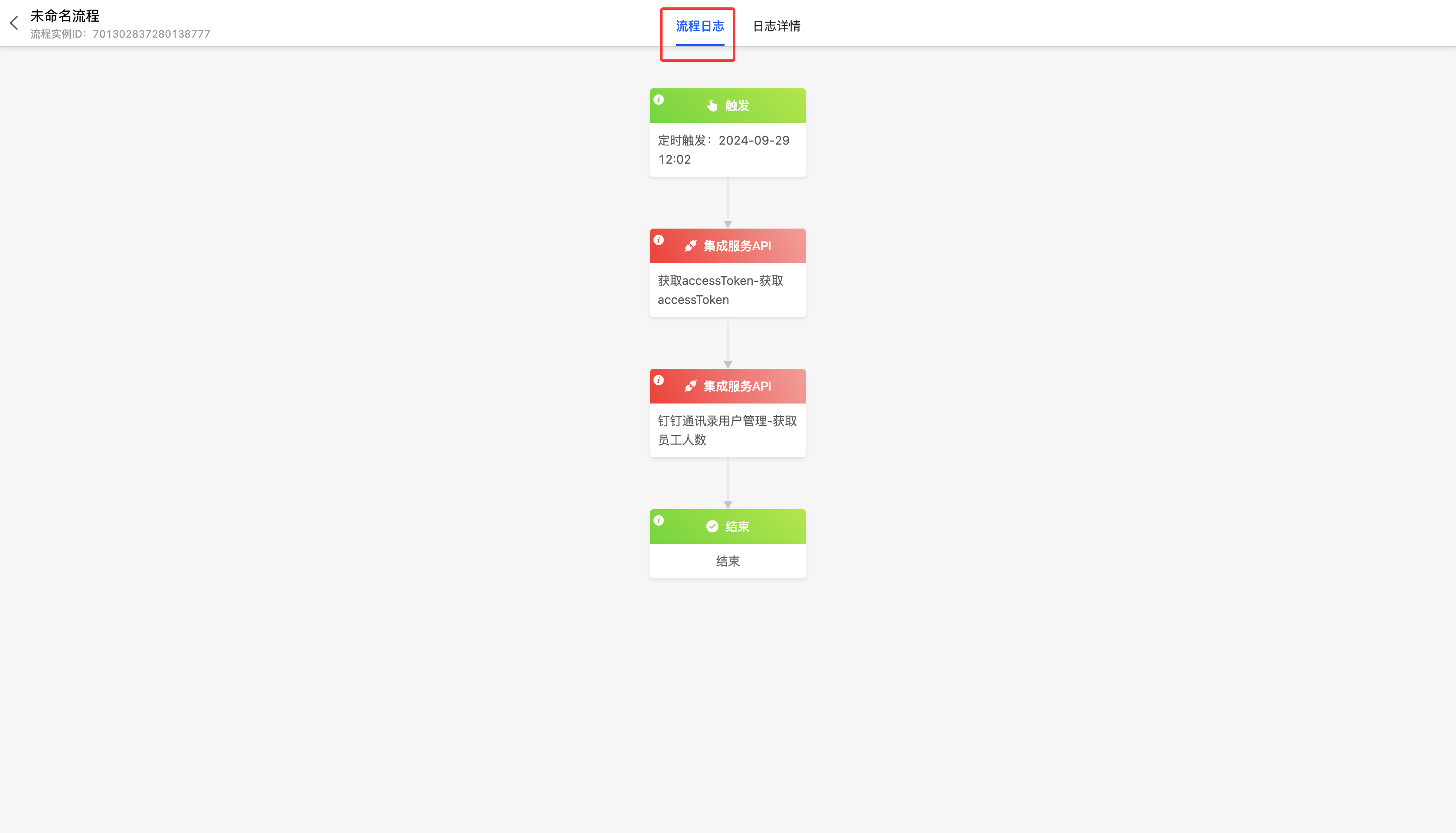 - 在流程日志中,点击节点,可查看单一节点执行情况