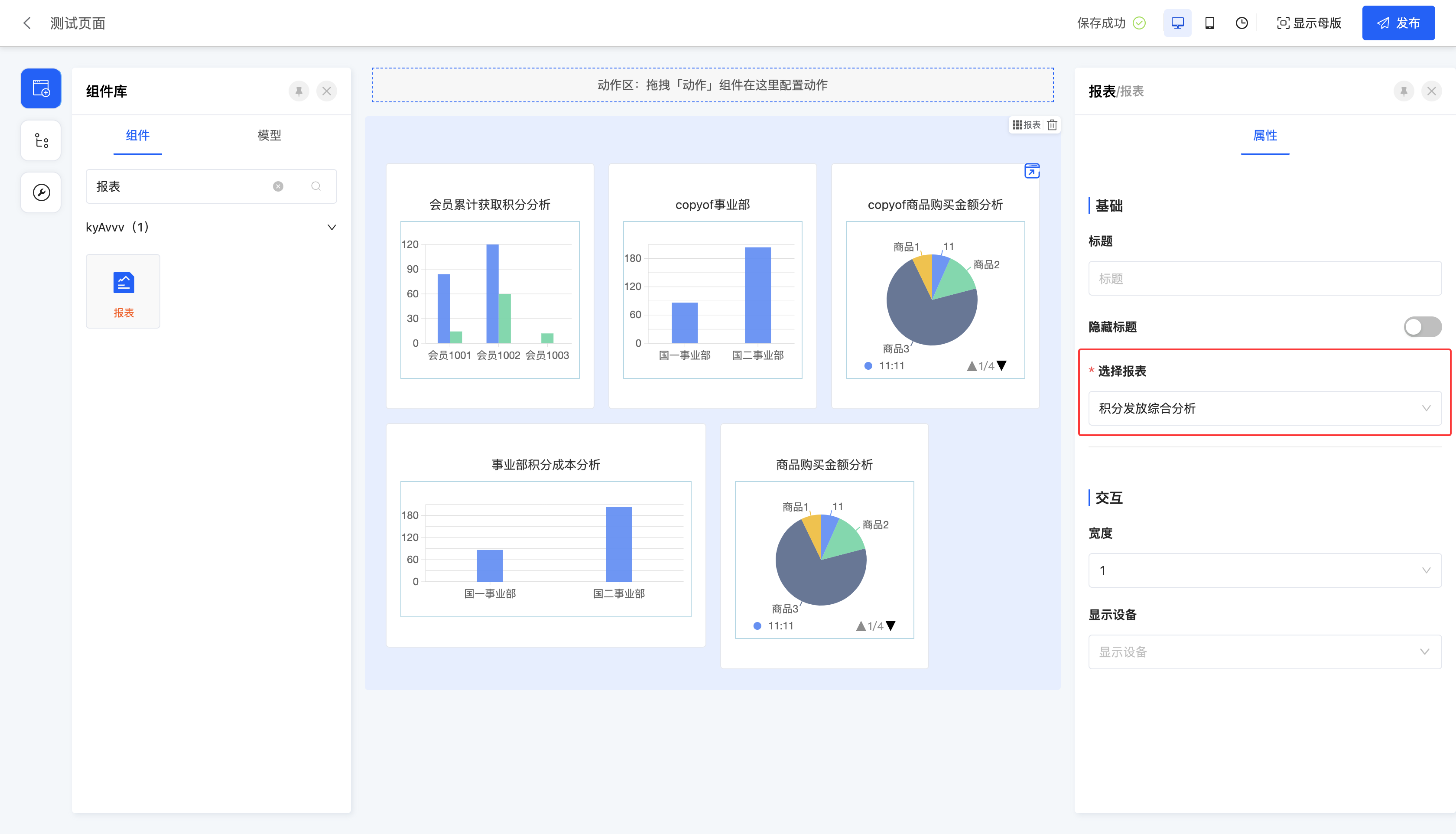 - 选择报表:可选择在数据可视化中已发布的报表。