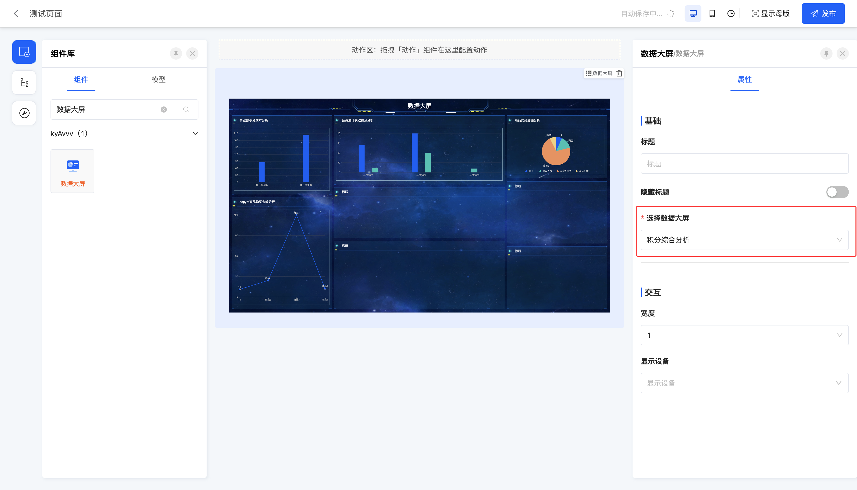 - 选择数据大屏:可选择在数据可视化中已发布的数据大屏。