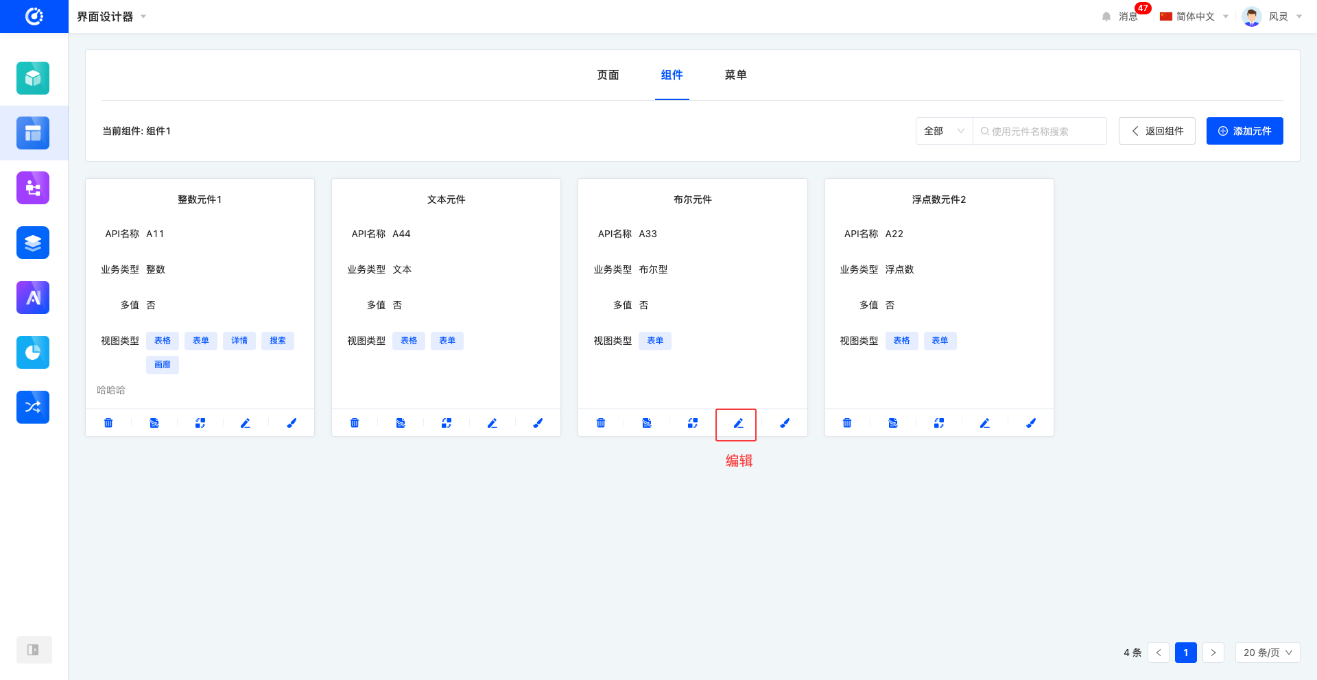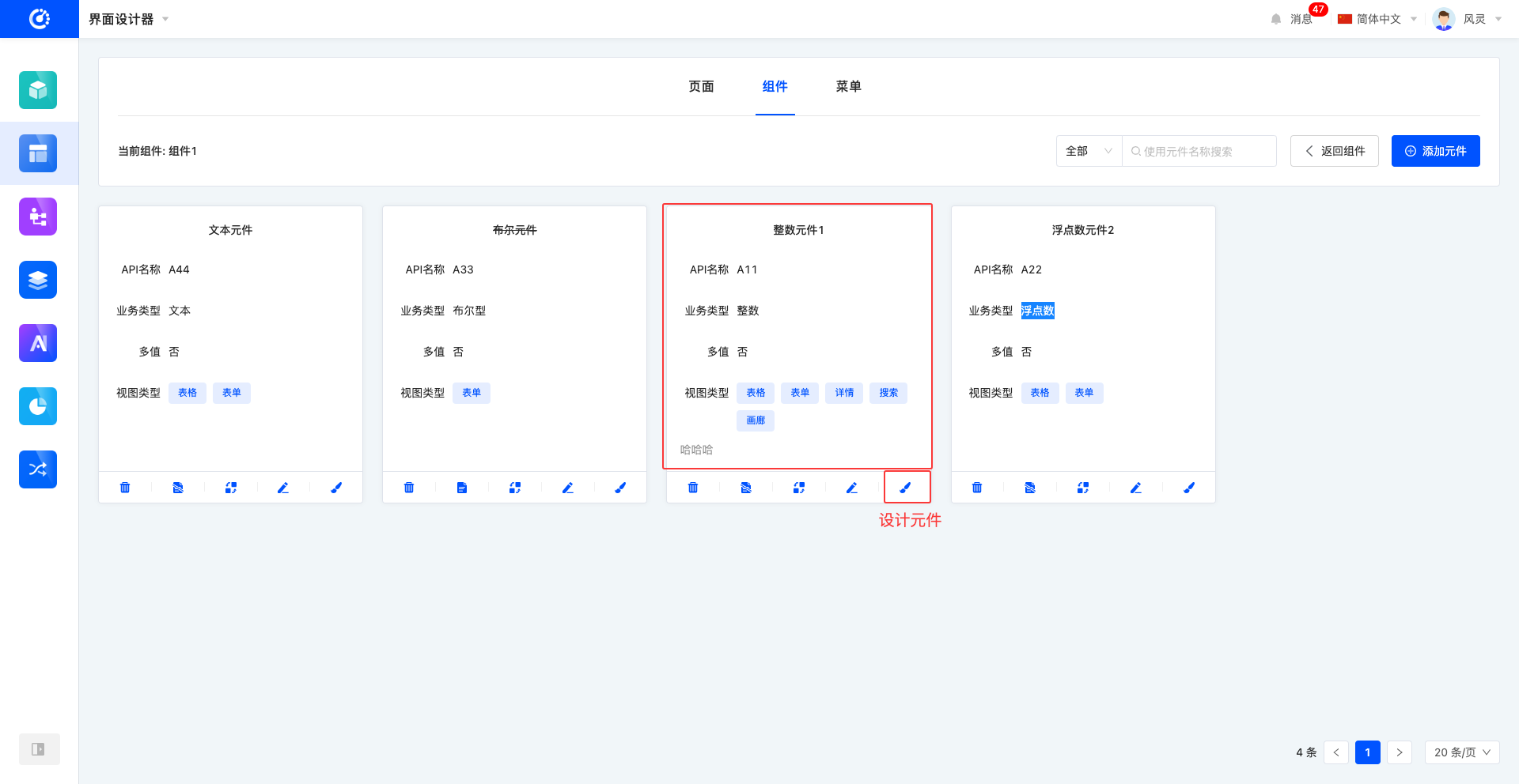 点击元件卡片主体部分,或点击「设计页面」图标,即可进入设计元件界面。