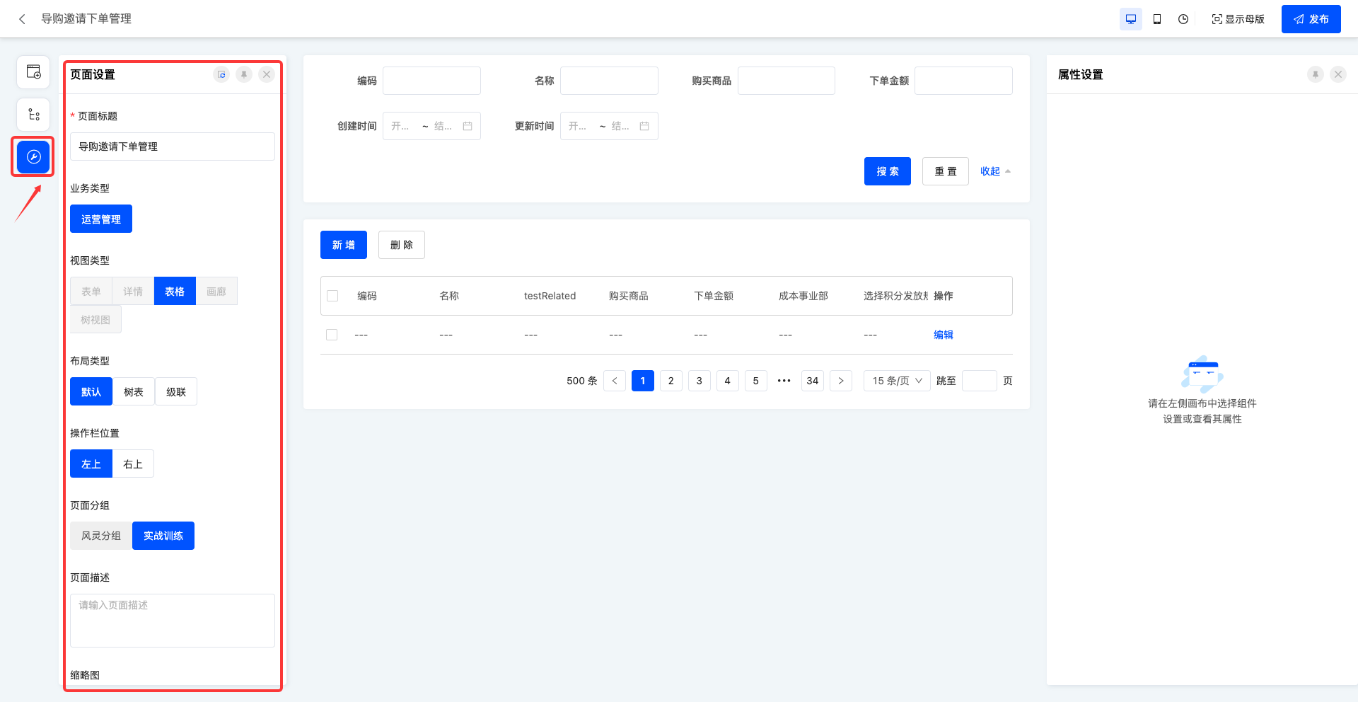 - 页面缩略图:在页面列表通过图片预览当前页面的大致布局样式。支持自行上传图片,若未上传,将显示系统默认的图片。