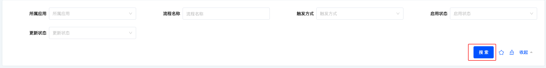 - 筛选:在筛选区选择或输入条件后点击「搜索」,即可对流程进行筛选。