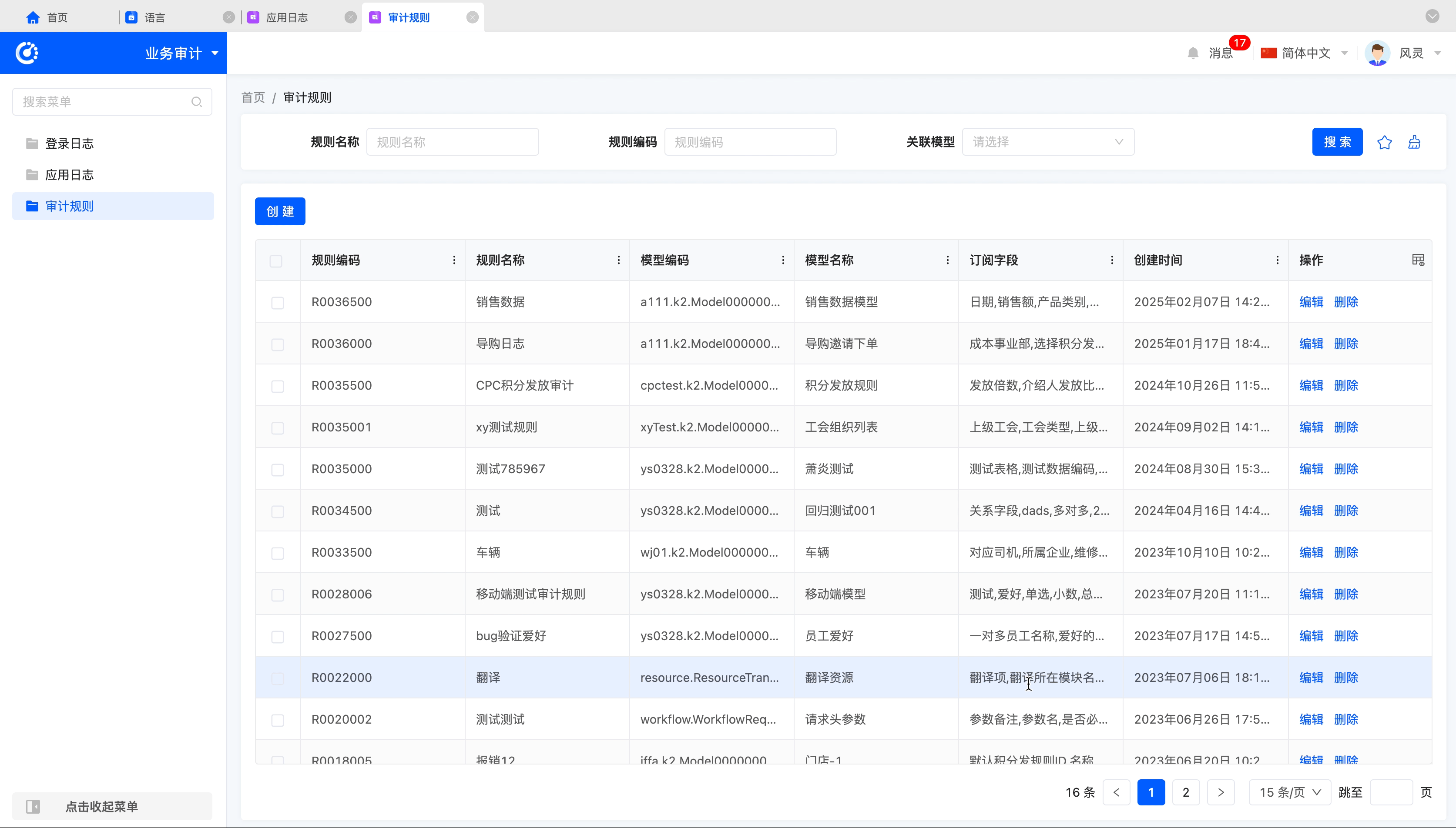 为了记录模型与字段的变化情况,用户可以自定义审计规则。一旦审计规则生成后,每当对该模型或字段进行操作导致其发生变化时,系统会在应用日志中自动生成一条相应的记录,便于后续追溯和查证。