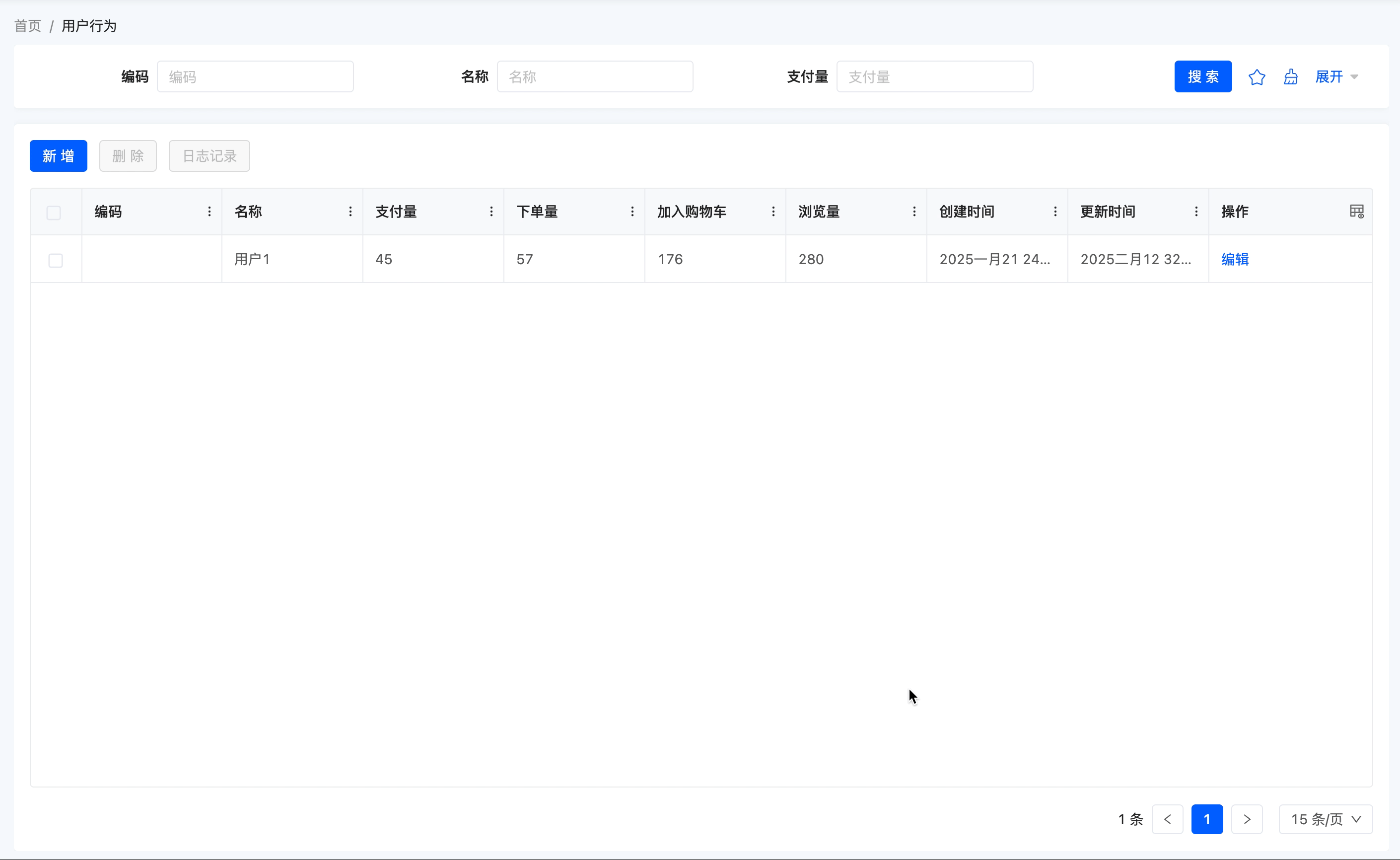 同时,在“用户行为”页面配置了“日志记录”操作按钮,可查看对应数据的变更信息