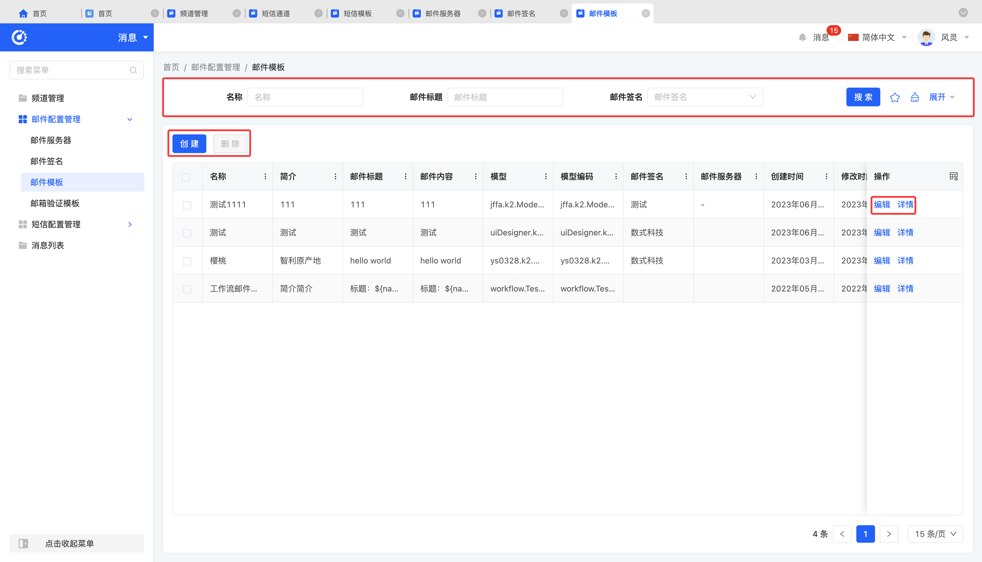 - 详情:点击「详情」,可查看所选邮件模板的详细信息,包括配置参数、状态等。